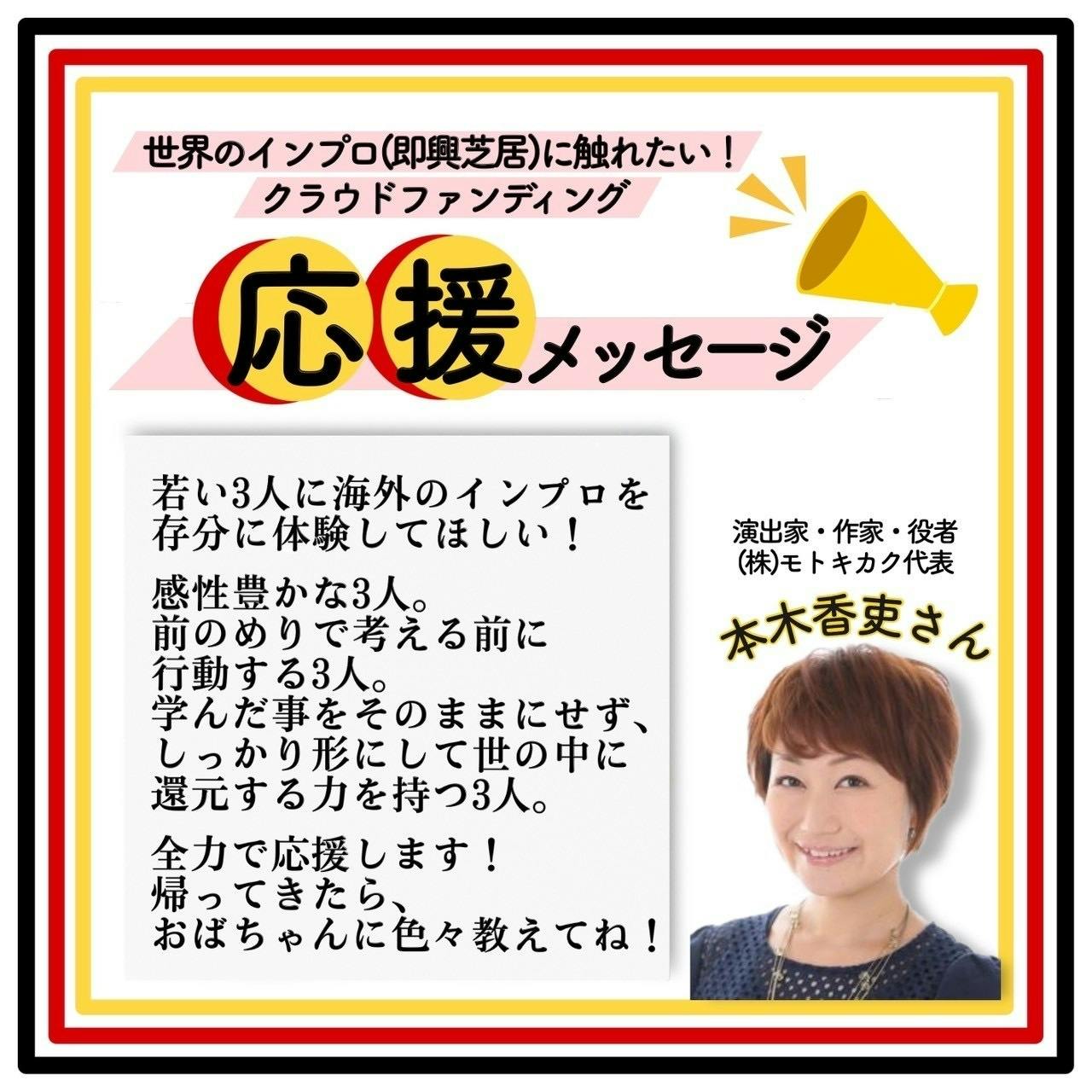 本日から本番の本木香吏さんから応援メッセージをいただきました。
