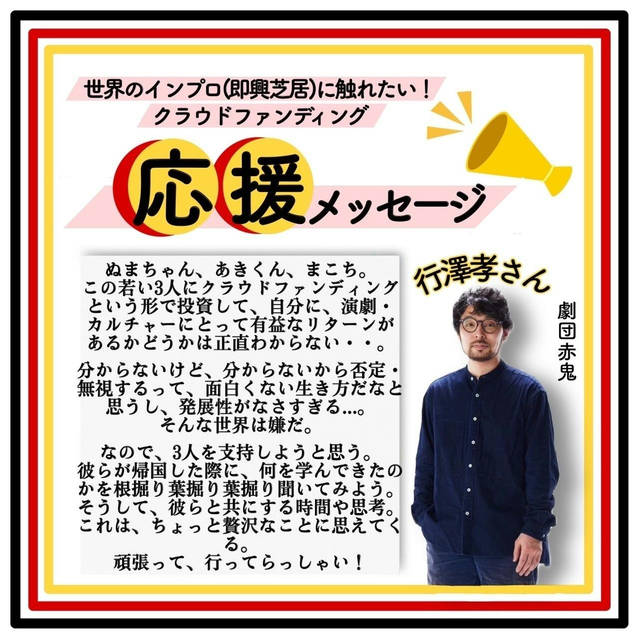 劇団赤鬼座長の行澤孝さんから応援メッセージをいただきました!