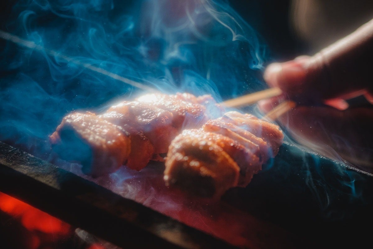 目の前で焼くライブ感たっぷりの焼鳥を