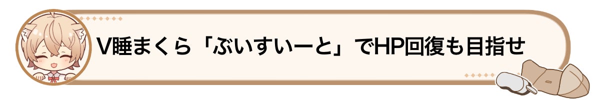 V睡まくら『ぶいすいーと』は「HPも追う」ことを目指したアイテムです。
