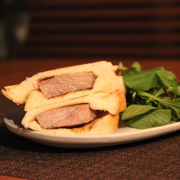 〖黒毛和牛の経産牛。サシ入りサーロインステーキ肉〗贅沢に、カツサンド風ホットサンド