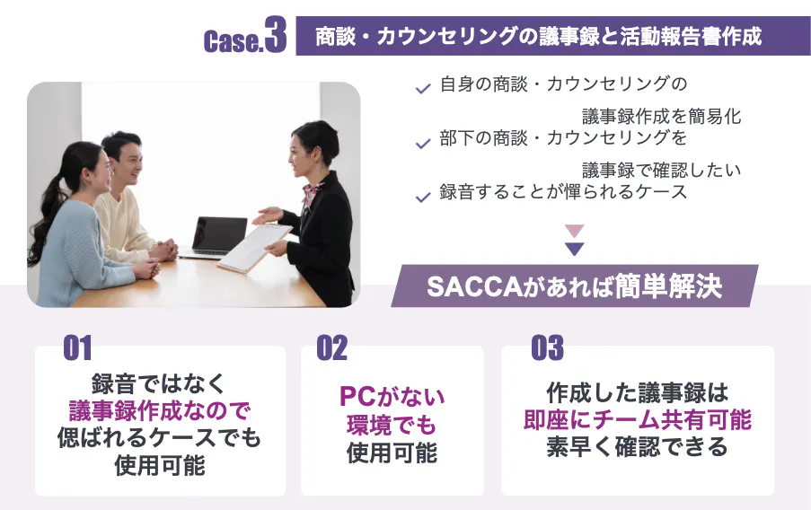 これからは、SACCAとスマホがあれば簡単に言った言わない問題を解決できます。