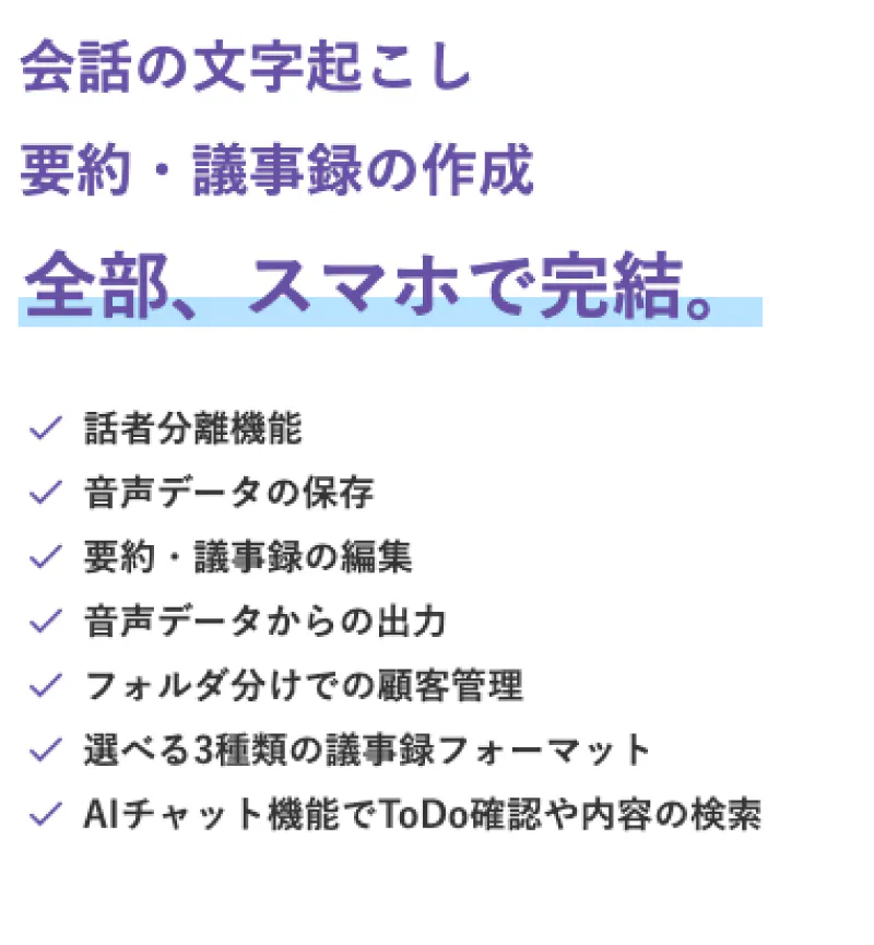 ・パソコンが不得意な人でも簡単にAIが議事録作成できて会議や商談の内容をすぐに共有可能。