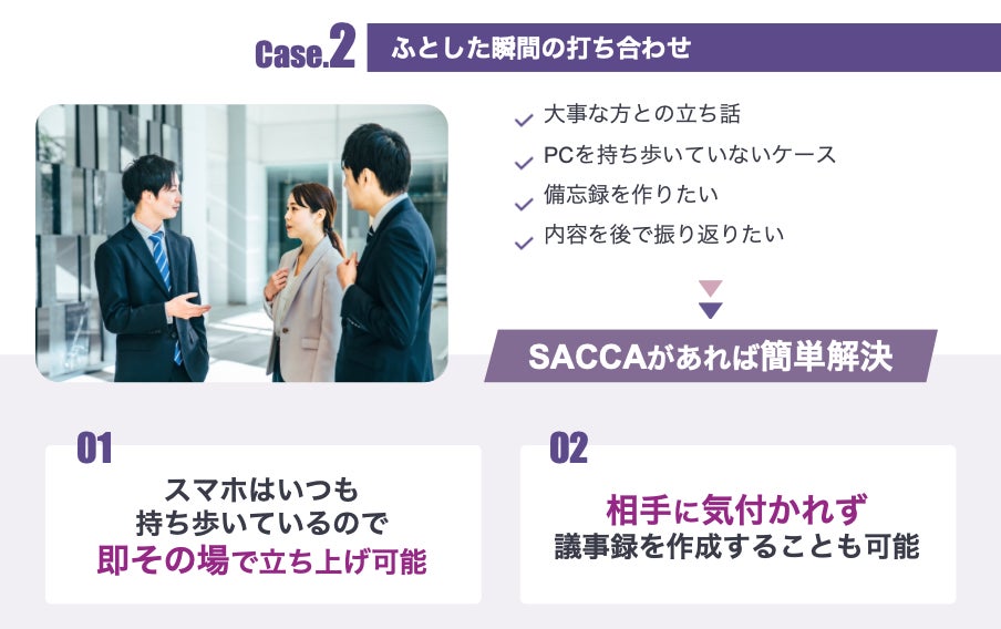 これからは、SACCAとスマホがあれば簡単に言った言わない問題を解決できます。