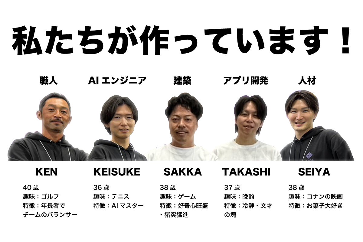 2024/06/18 12:07こんにちは!このメンバー紹介シリーズもついに4人目。だんだんとチームを構成するメンバーの全容が明らかになってきましたが、今回ご紹介するのはチームの中でも異色の経歴、職人の長谷川です。最年長でチームのまとめ役、ユーモアあふれる人間性で、実は誰よりもSACCAに対する情熱を抱いている。そんな長谷川に話を聞いていきたいと思います。インタビュー私「長谷川さんは職人と聞きましたが、普段はどのような仕事をされているのでしょうか?」長谷川「主に外構まわりの工事をしておりまして、カーポートを設置したり、ウッドデッキを組み立てたりしてます。自身の会社を経営しつつ、今でも現役の職人として働いてますよ。」私「ITベンチャーの中でその経歴は意外すぎます。まさに異色のメンバーですね。」長谷川「そうですね。メンバーの中ではITと一番遠い世界で生きてきましたから。でもアプリ開発のビジネスを体感して、職人の仕事とはまた違った楽しさがあることを知りましたし、刺激的でとても充実してますよ!」私「知らない環境でも前向きに取り組める姿勢、私も見習いたい。。でもITの知識が乏しい中で大変なこともあるのではないでしょうか?」長谷川「そうですね、最初はITに関することは分からないことだらけで。。ですがそこは福田や鍵谷といったITのプロフェッショナルがいるので、変に自分もついていこうとせず、今は自分だからできることを追求してますね。」私「なるほど、例えばどのようなことでしょうか?」長谷川「展示会出展時のブースの設営とかは、私の担当ですね。普段職人仕事してるんで、めっちゃ早いですよ笑。 あとは地元のイベントとかに出たときにSACCAを紹介して顧客をつないだり。どちらかというと泥臭い仕事をやってますね。」私「そういうことができるメンバーも大事ですもんね! これも聞いたのですが、SACCAを運営しているUNION×DESIGN株式会社では長谷川さんが副社長を務めているのだとか。」長谷川「おー、よくご存じで。もともと発起人の属が私に声をかけてもらったのがSACCAのはじまりで、今は副社長というポジションに就かせてもらってます。」私「重圧もすごそう。。」長谷川「責任はひしひしと感じますね。特に今は成長を加速させるフェーズに入っているので、全力投球で日々SACCAの販売促進活動に精を出してます。」私「今は販売に全力投球ですね! 最後に一言よろしいでしょうか」長谷川「この度はキャンプファイヤーを通して支援いただいた皆様、本当にありがとうございます!私たちも多くの応援メッセージをいただき、とても励みになりました。今回応援いただいた支援者様の期待に応えられるよう、我々一同SACCAの改善に尽力しますので、今後ともよろしくお願いします!!」私「ありがとうございました!」 もっと見るチームメンバーの紹介(その3 - AIエンジニア 福田)