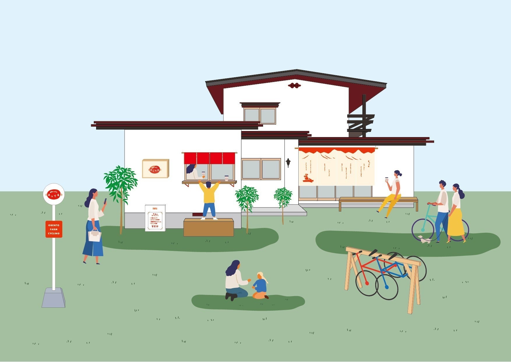 街をめぐるための自転車の貸し出しを行っている上山市は、サイクリストが多く訪れる環境。カフェの目の前の通りはサイクリングに適した環境です。自転車の空気入れポンプや故障時の交換用チューブなどサイクルステーションとしての機能を充実した場所に。また管理栄養士の資格を活かしたバランスの良い食事の提供をし、サイクリングでの疲れがとれる癒しの場所に。