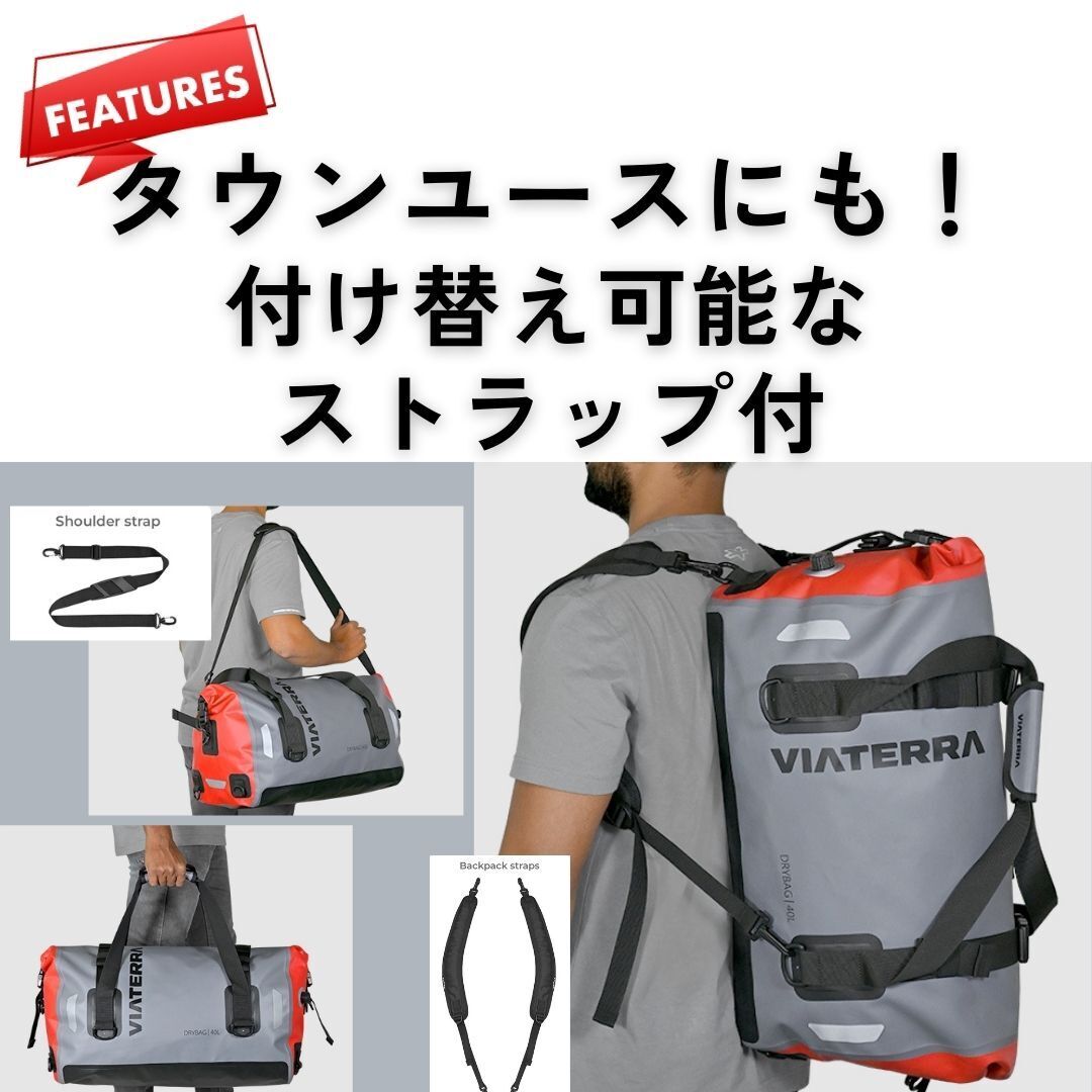 バイクを降りた後も、スポーツバッグや旅行用のバッグとしても、使いやすいストラップが付属しています。