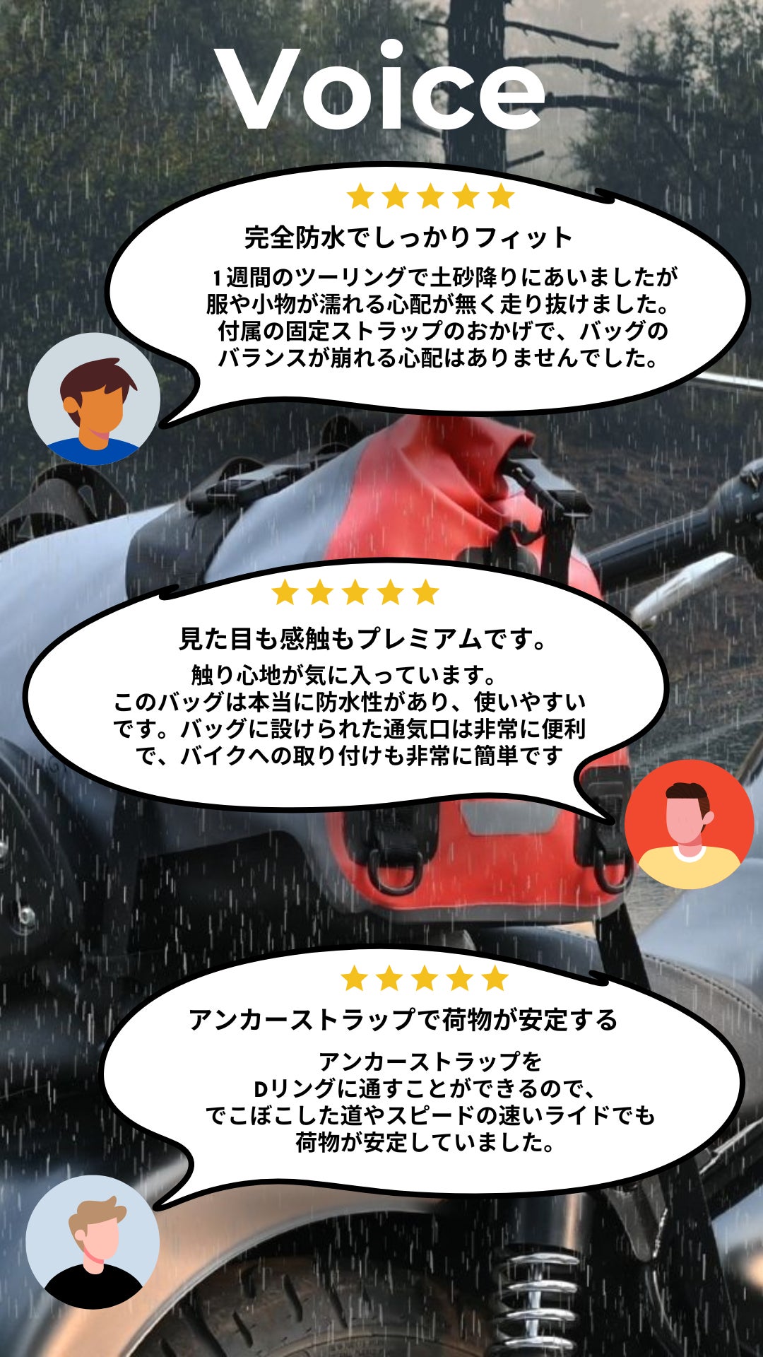 2億人の足であるバイクユーザにとって、雨季ライドに欠かせない必需品として、この防水バッグが開発されました。
