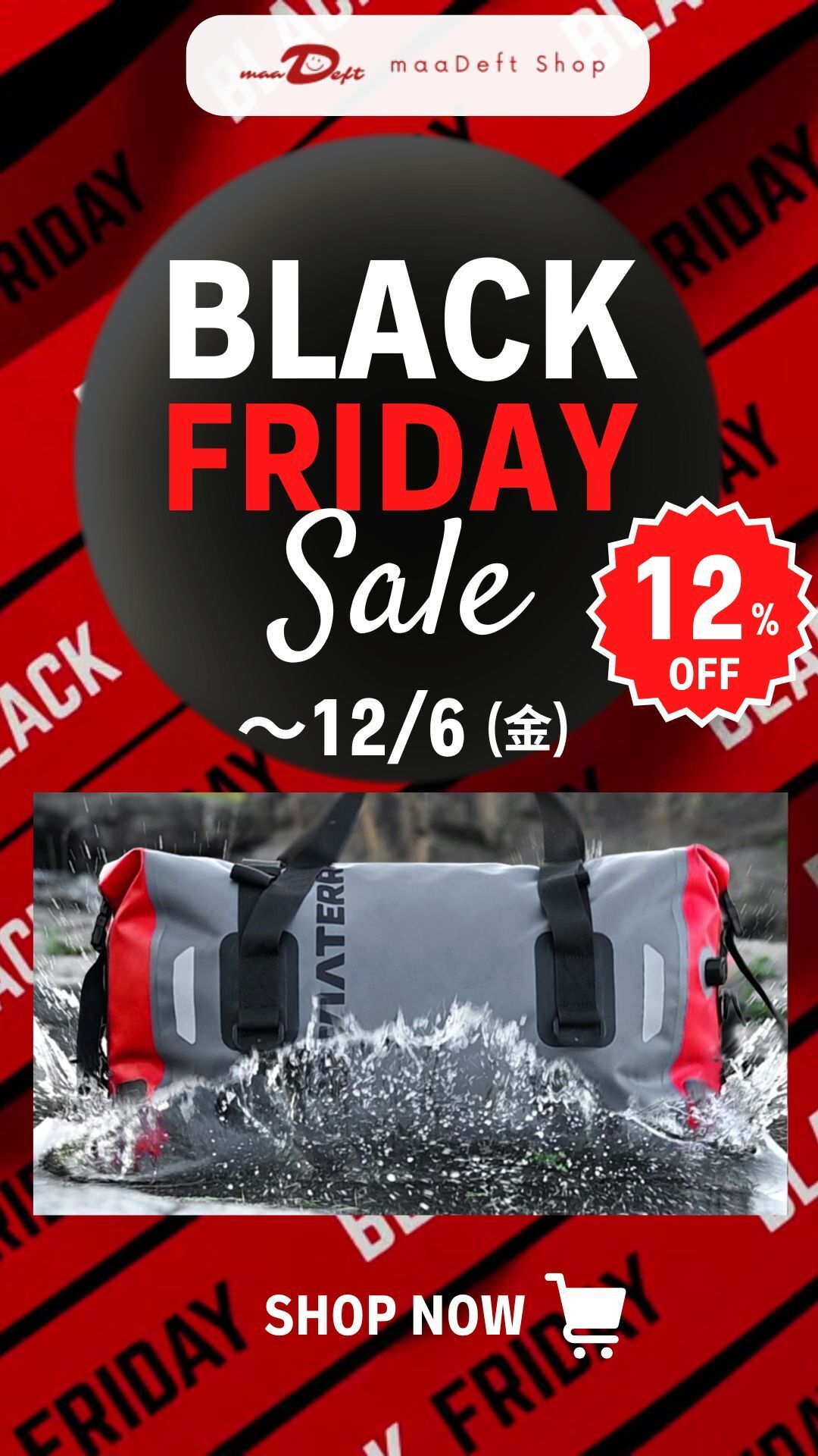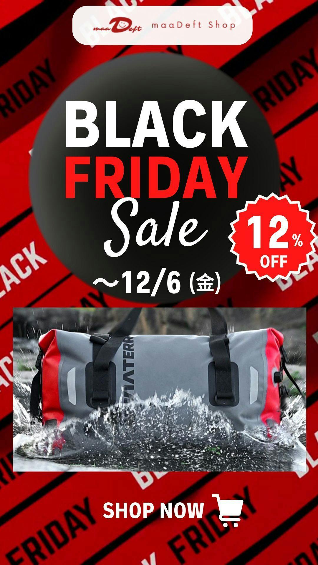 2024/11/27 18:11【BLACK FRIDAY】2024/12/6(金)まで開催中です。★maaDeft BLACK FRIDAY★ViaTerra Drybag が 12%OFF!耐水圧20,000mm超えの【超防水バッグ】TPU3層ラミネート加工・超音波溶着技術数量限定販売ですので、お見逃しなく!maaDeft Shophttps://shop.maadeft.com★Amazon BLACK FRIDAY★バイク用ちょい掛けカバー|MotoBrella(モトブレラ) が Amazon Black Friday で20%OFF!先行セール開催中!外出先の駐車場で使いやすいトップカバー紫外線・日光・霜・黄砂・花粉・雨対策にAmazon MotoBrellahttps://amzn.to/41bwait#BlackFriday #ViaTerraDrybag #drybag #ツーリングバッグ #バイク #防水#BlackFridayAmazon #MotoBrella #drybag #バイクカバー もっと見るViaTerra Drybagシリーズをご購入できるmaaDeft Shopオープンしました!