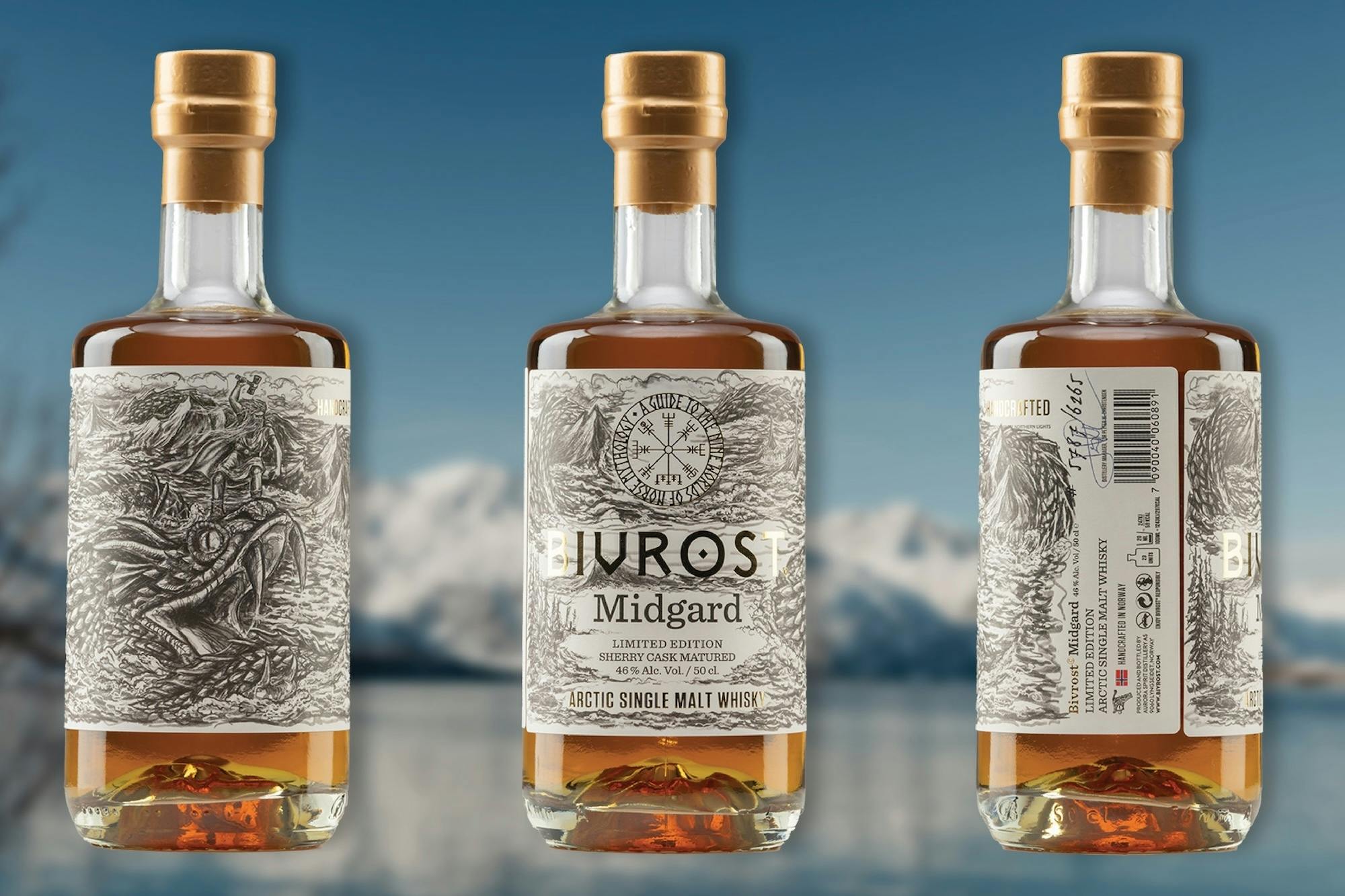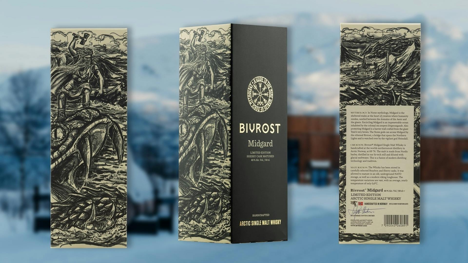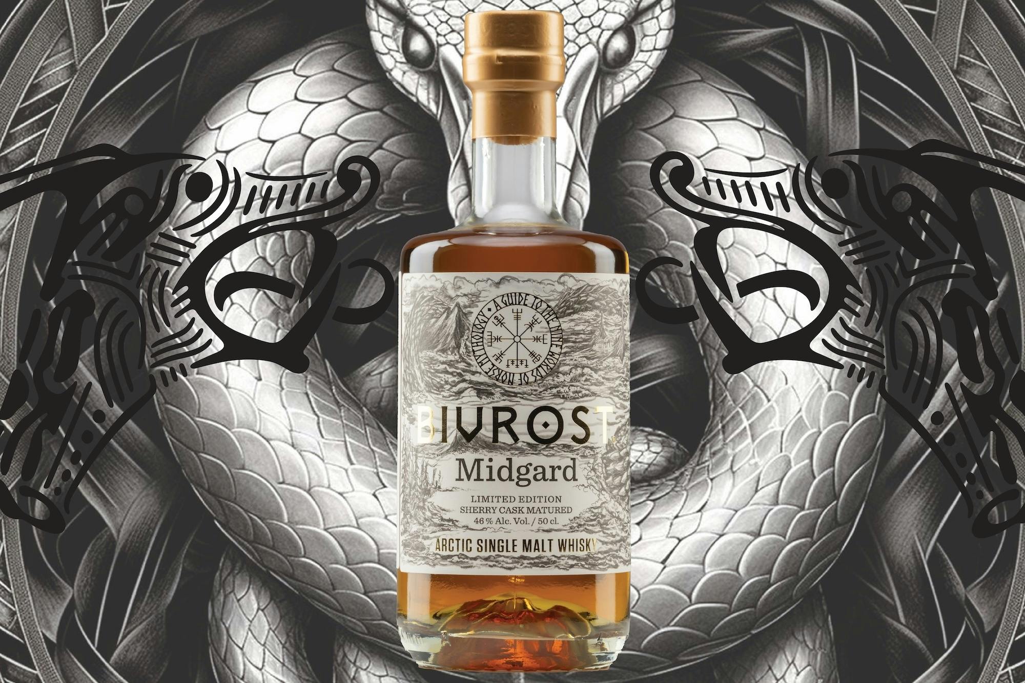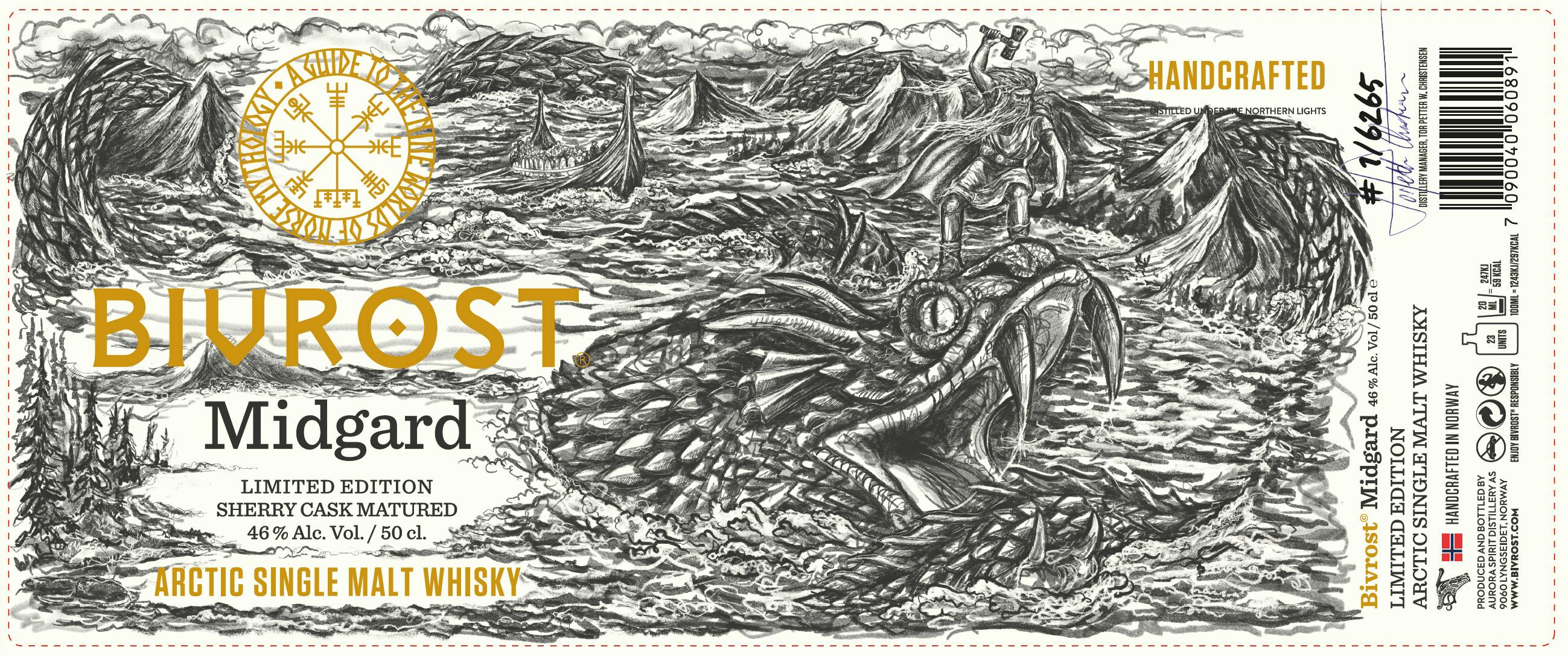 北欧神話9つの世界シリーズ最終作となる北極シングルモルトウイスキーは、世界の真ん中にある護られた場所という意味を持つ「ミッドガルド」をテーマにつくられた。ミッドガルドは神々が住む国アスガードと巨人族の領域の間に位置し、人間が住む世界とされている。周囲を取り囲む難攻不落の深い海の底には、ミッドガルドをぐるりと取り囲むように巨大な海蛇ヨルムンガンドが息を潜めている。