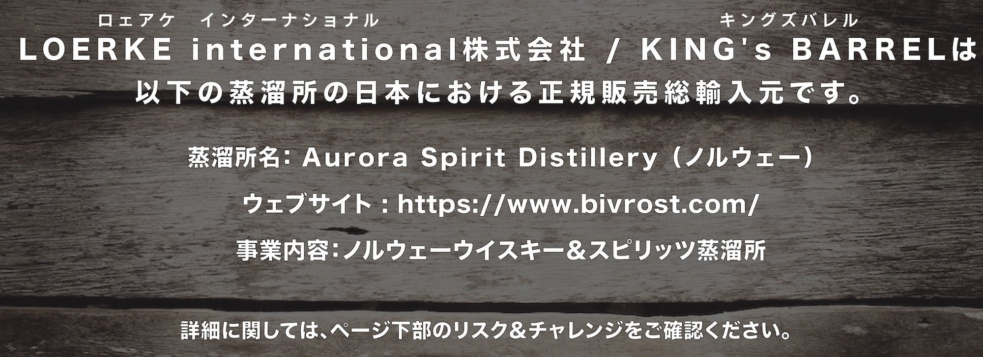 現在パートナーシップを組むKING's BARRELが惚れ込んだとびきりの蒸溜所たちは、ノルウェー北極圏に位置する世界最北端の蒸溜所「オーロラ・スピリット」を筆頭に、デンマークの小さな島「エーロ島」で唯一の蒸溜所「エーロ・ウイスキー」やドイツの家族経営のこだわりのウイスキー蒸溜所「エゲンシュタイン」などなどKING's BARRELが取扱う全てのお酒の蒸溜所やメーカーは、こだわりを持って探し当てた素晴らしいお酒のつくり手たちばかりです。