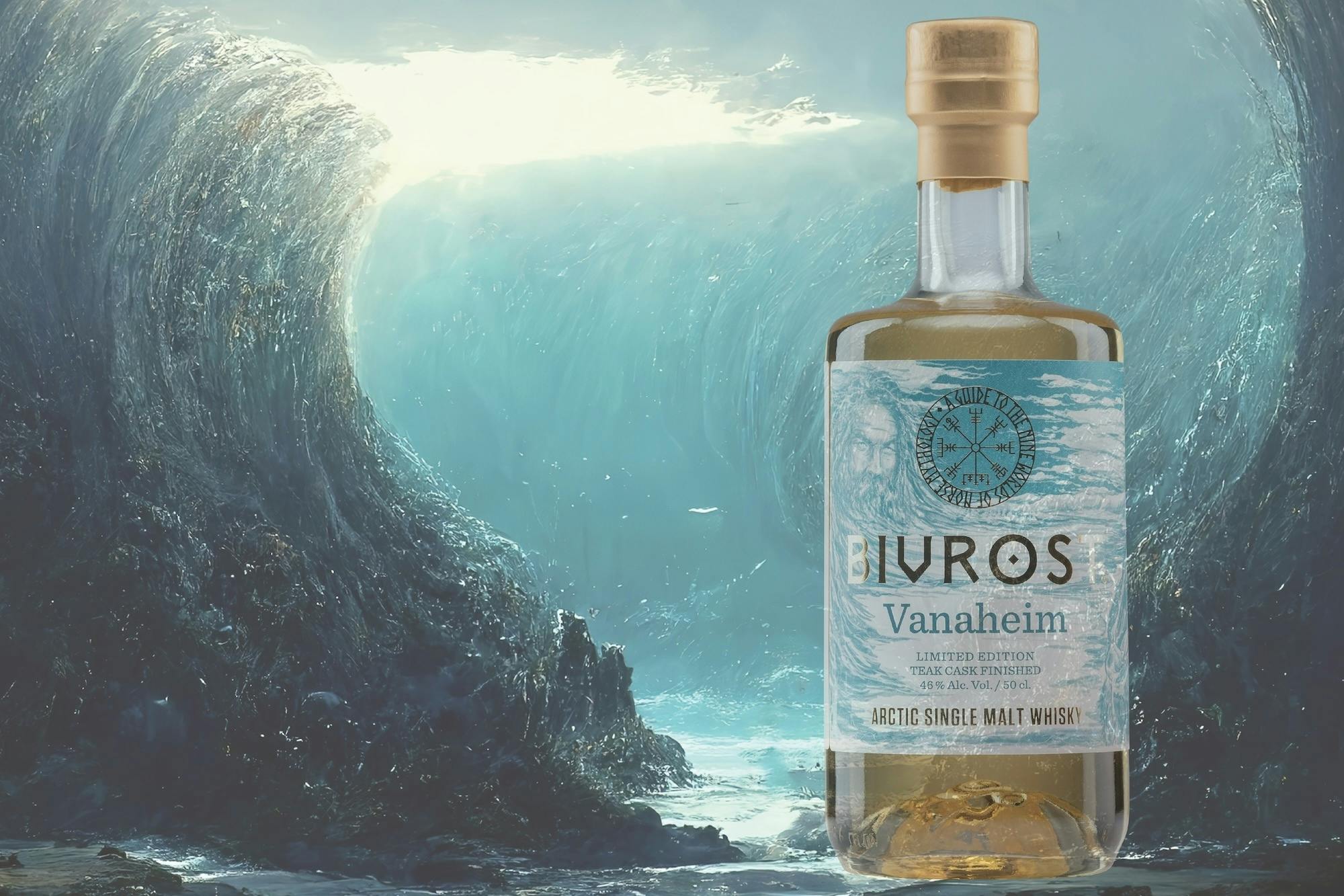 そんな航海の守護神ニョルズの国を彷彿とさせる海の底のような美しいエメラルドブルーを基調とした「BIVROST 北欧神話9つの世界シリーズ」のシリーズ7番目となる「ヴァナハイム」は氷のように冷たい大地、ノルウェーの北極圏で氷河の融解水と北欧の大麦から作られ、ハイテク蒸溜器で蒸留された後、選び抜かれたバーボン、シェリー樽で熟成され、最後はなんとチーク樽で完成される。