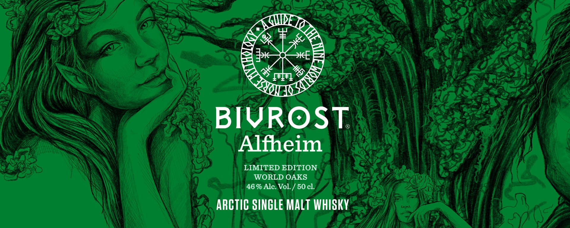 そんな「アルフハイム」をイメージしたウイスキーは、生命感あふれる美の象徴とも言えるオークの木を意識した美しいグリーンをベースとしたラベル及びボックスのデザインとなっており、黄金の猪にまたがるフレイ神と美しいエルフたちが描かれている。世界中の様々なオークの木で作った樽で熟成された「ワールド·オーク·ウイスキー」は、「北欧神話9つの世界」のシリーズ上、最もパワフルな味わいを持つ、ウッディなオーク感たっぷりのシングルモルトウイスキーへと仕上がっている。
