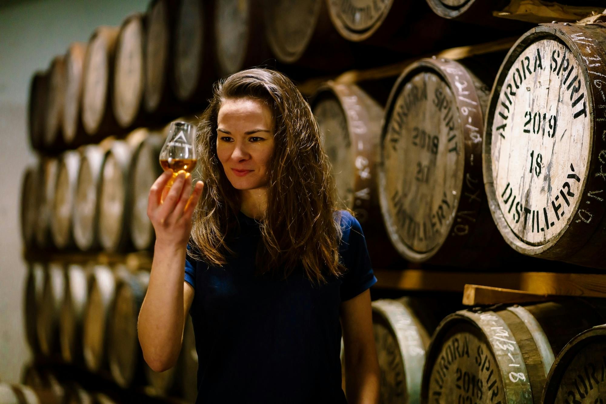 暑い日には樽内の圧力が高まって膨張し、酒が樽の奥深くまで浸透する。 逆に気温が下がると酒に樽の風味がより染み込むという、スピリッツと樽のこういった相互作用は樽の熟成に欠かせない大切な要素だ。さらに、比較的小規模な蒸溜所である「オーロラ・スピリット」では通常に比べ小さめの樽を使用しており、大きな樽と比べ、小さな樽の中では酒が樽に接する割合がその分増え、その結果、ウイスキーの個性がより早く形成され、樽由来の香りや風味がより色濃く押し出されるのだ。