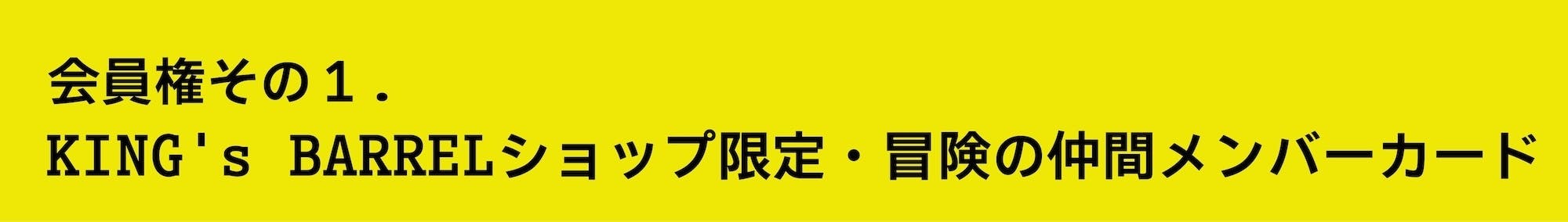ただし、2024/7/1以前に実店舗がオープンしている場合、当クラファンにて「KING's BARRELショップ限定・冒険の仲間メンバーカード」の支援者になっていただいた方は、実店舗来店時にそれを証明するメール等を店舗スタッフにお見せいただくと、メンバーカード発送前でもメンバー割引をご利用になれます。