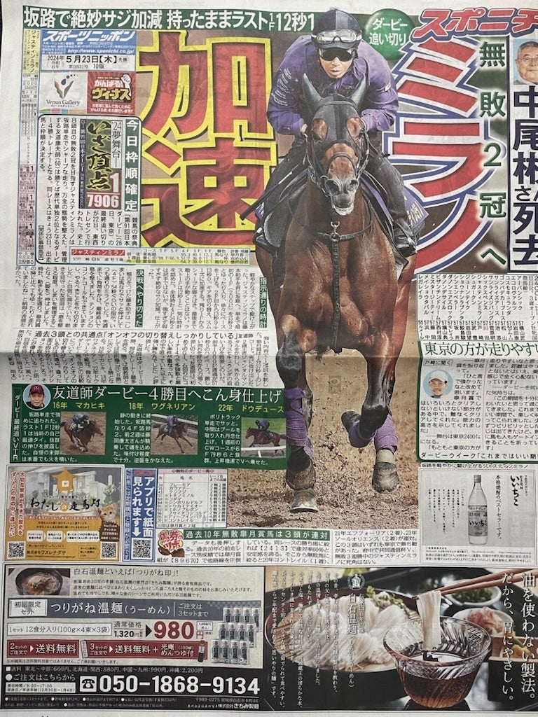 5/23 スポニチ九州版 1面突き出し広告欄に「わたしの走馬灯」が掲載