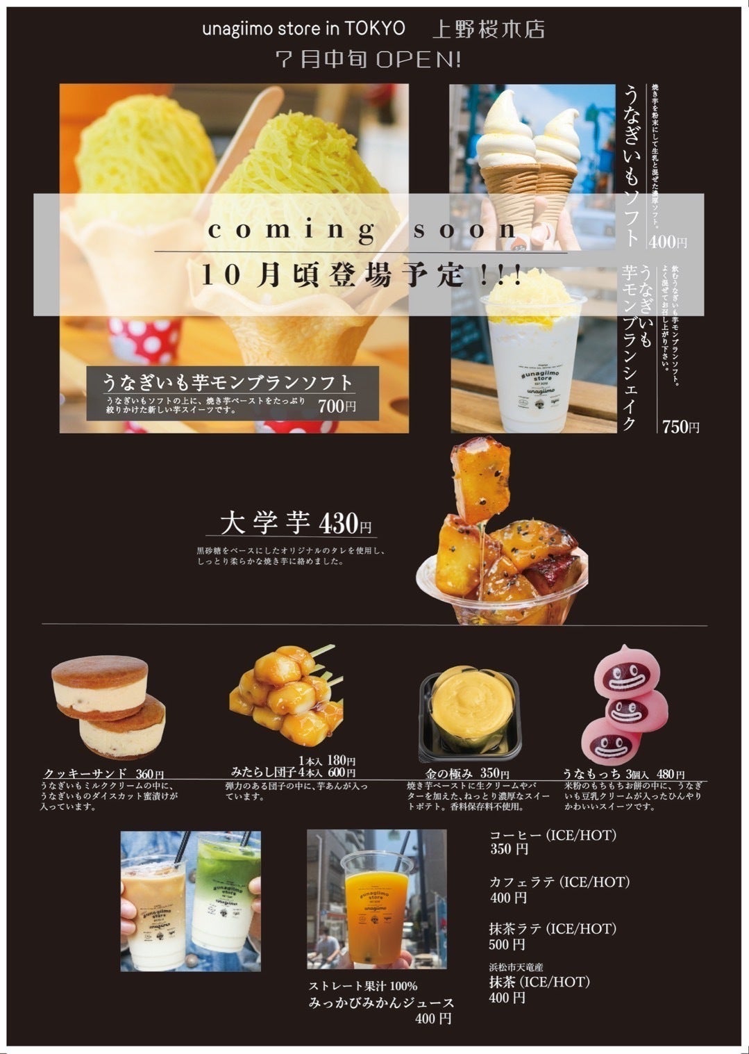 まだ、動力電源の工事が終わっていないためメイン商品の「うなぎいも芋モンブランソフト」の提供が間に合っていませんが、正式オープンに向けて更なる準備を進めて参ります。お客様からいただいたフィードバックをもとに、より良いサービスを提供できるよう努めてまいります。
