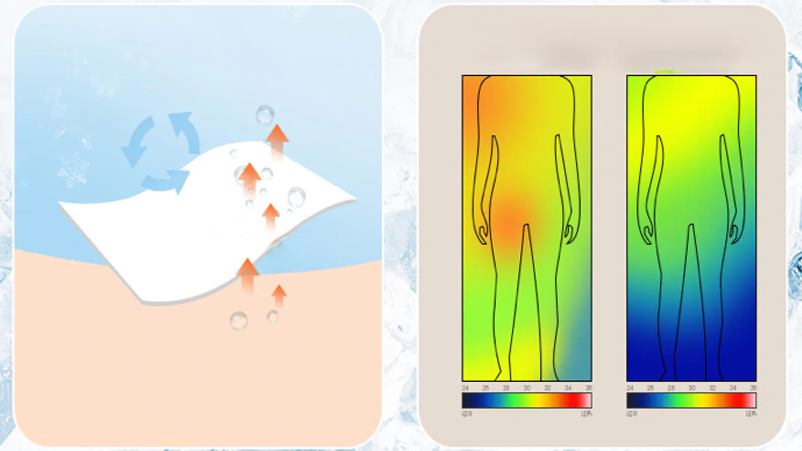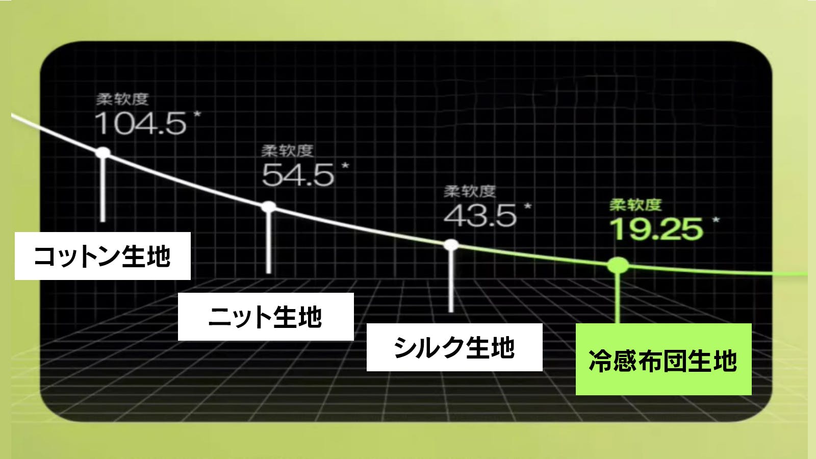 肌から生地へ熱が移動することで冷たく感じる接触冷感素材。