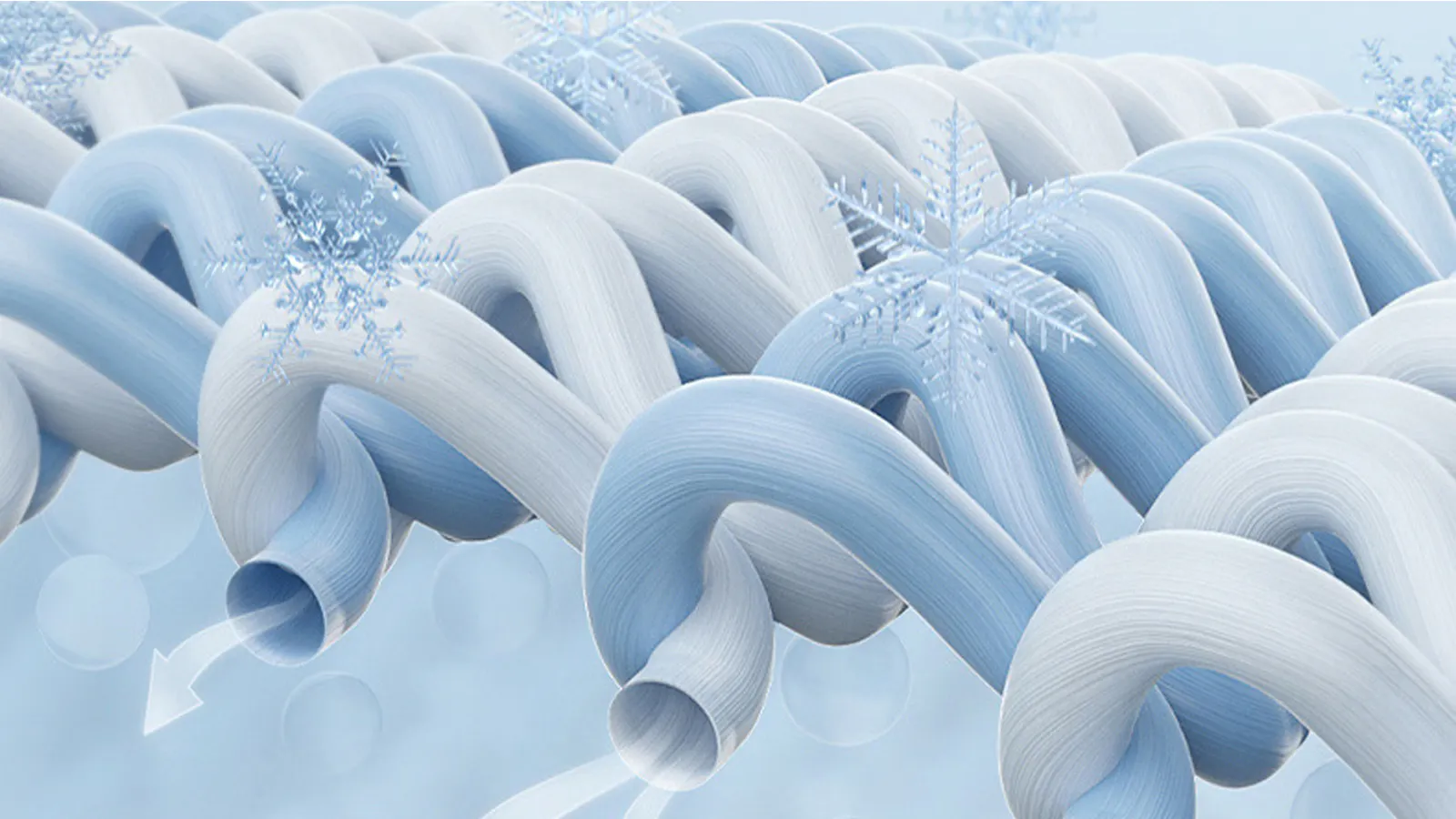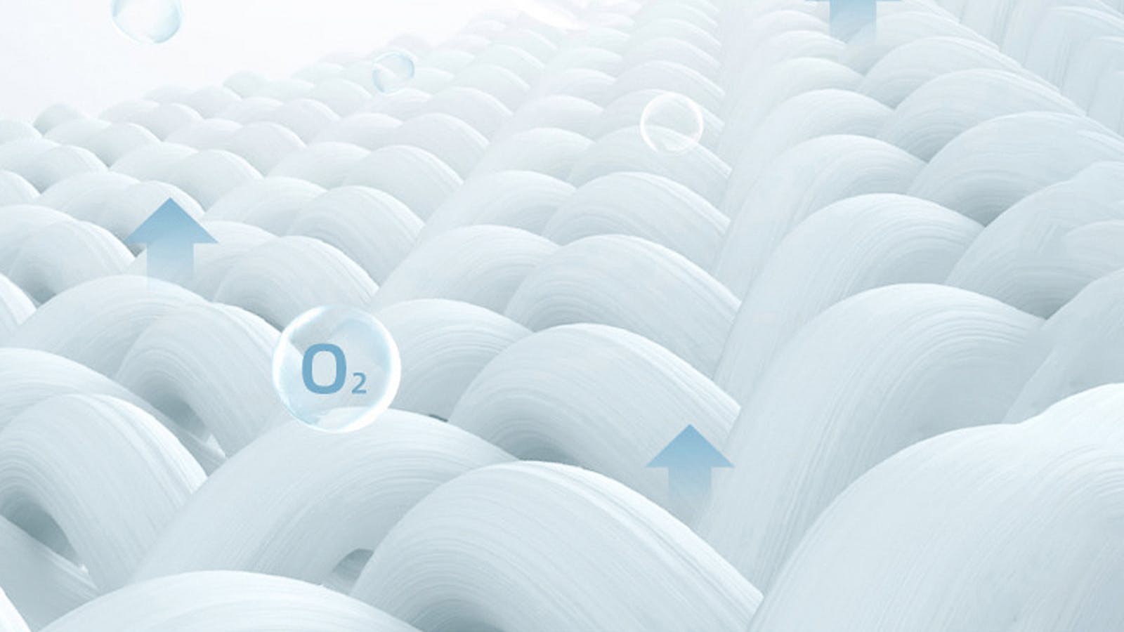布団に使われるのは1.5N/texの繊維で、特殊な極細ニット加工を施しています。