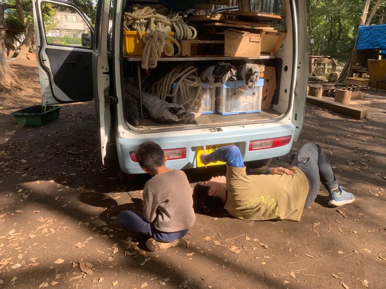 2024/12/15 19:40こんにちはーめがねですクラファンで車をgetさせていただいてから、早5ヶ月が経ちますもうすでに県内をブイブイと走っているわけですがこのクラファンのリターンとして「プレーカー&めがねが出張ワーカーとして伺います!」というのがあったんだよねこのリターンで、12月7日に、鎌ヶ谷市へ出張プレパをしに行ってきましたー!応援してくださった方々のおかげだぜありがとー!!今回伺ったのは『鎌ヶ谷市民の森』呼んでくださったのは『鎌ヶ谷こども食堂ネットワーク』のみなさん「夢つむぎの会」というステキなイベントへ伺いましたこのイベントでは午前中に#ゆめパのじかんを上映し、そのまま午後はプレーパークをやっちゃおうというものプレーパークをご存知の方も、全く知らないよーってかたもみーんな一緒になって過ごせるのが遊び場のめっちゃいいところだって、それぞれの「楽しそう」「やってみたい」を持ち寄ればいいんだもの最初の準備段階から、スタッフの方々や遊びにきてくれた人と一緒にスタート遊びに来てくれたご家族に「あそこにブランコつけたいんだよー!」って言ったら『えー!ブランコなんて作ったことないぞ・・・』と言いながらチャレンジしてくださったり遊びに来てくれていたお兄ちゃんに「ここにロープを結んでみたいんだよね」「引っ張るの、手伝ってくんない?」って言ったらニコって笑って一緒に引っ張ってくれたり結んだロープをネットに見立ててバドミントン対決に燃える人たちやディアボロとか、板とか、バドミントンラケットで落ち葉を山盛り集めている人たちや端材に向かって黙々と金槌を振るう人たちや「大人だって遊ぶんだい!」とロープによじ登るステキな人たちなどそりゃーもう楽しい時間でした!もっと遊びたいよねー!って こどもたちと一緒に時間を過ごしていたらロープがどんどん増えていって蜘蛛の巣みたいなカタチに大人のみなさんからは「ロープを結べる技術がある」ところを褒めていただくことが多いけど、「もっと面白くならないかな?」「こんな風にできたら楽しいんじゃないかな?」って考えるこどもたちの発想や気持ちが全ての出発点なんだよねめがねが作ってあげる遊び場じゃなく、みんなで作る遊び場なのよこういう遊びの時間空間を届けるためのプレーカーをゲットしてくてチャレンジしたクラファンだったんだよー!!そんな気持ちにさせてもらった1日でしたーまた1月以降も県内に出張する予定があります次の遊び場も楽しみだぜ!めがね もっと見る