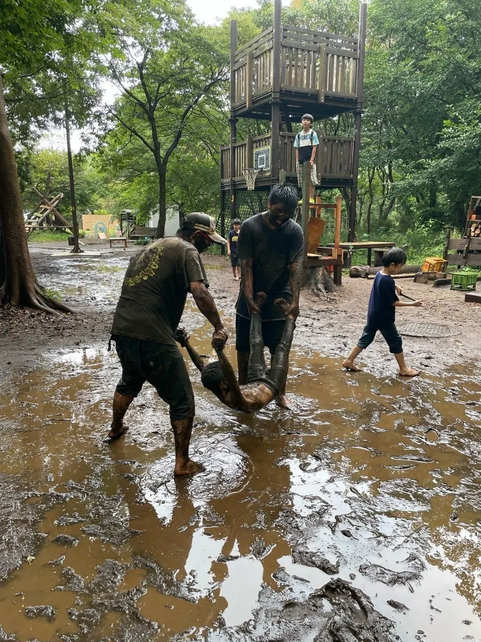 そこでは焚火、木登り、泥遊び、水遊び、ペイント遊び、工作、基地づくり、マンガ、ゲーム、