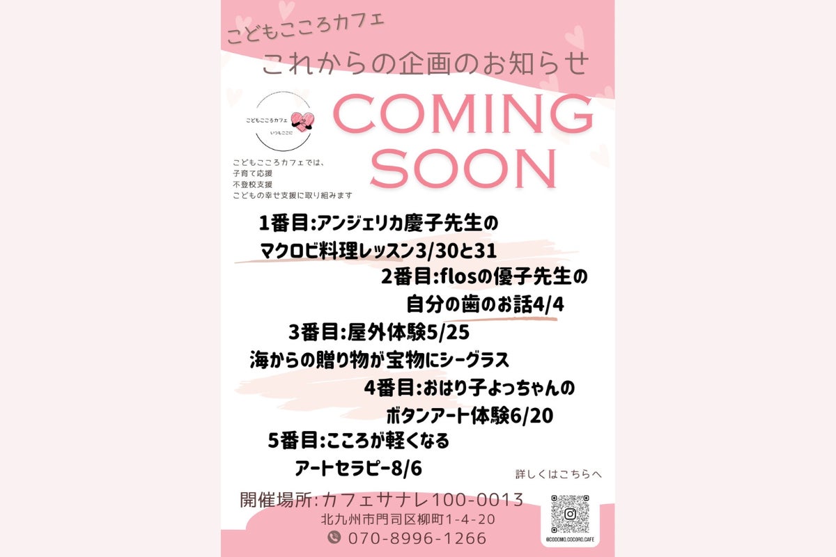 「こどもこころカフェ」をたくさんの方に知っていただくために、さまざまなイベントや発信を始めています。「こんな専門家の方がいるんだ!」「ここに来ればこんなこともできるんだ!」という告知も兼ねて、6月のグランドオープンに向けて、プレイベントを毎月開催中です。お近くの方、ぜひいらしてくださいね。