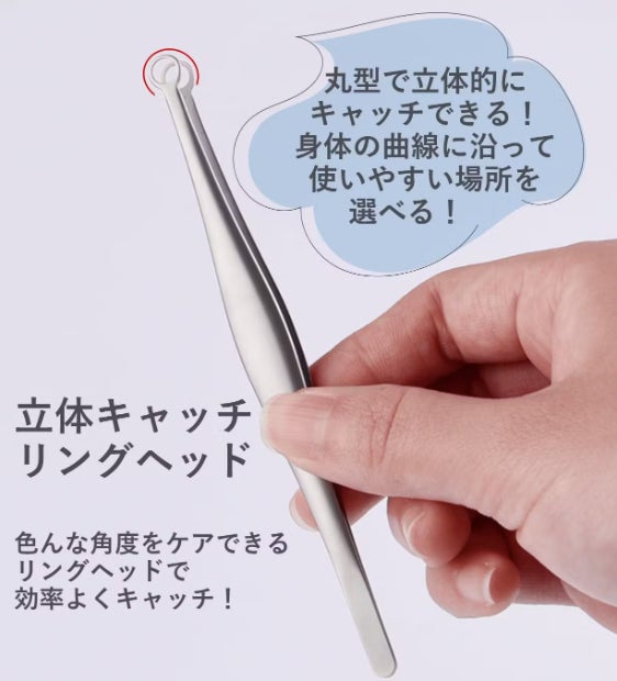 くるりキャッチは、毛抜きの特徴を向上させ、リングヘッドで立体キャッチが可能です。軽い力でラクラクキャッチし、精密な構造で細いムダ毛もしっかりキャッチできます。高耐久なステンレス製で、薄いリングヘッドは繊細な毛までしっかりキャッチできます。円形ヘッドは体の曲線に合わせて使用でき、水で丸洗いできるため、長期間使用できます。