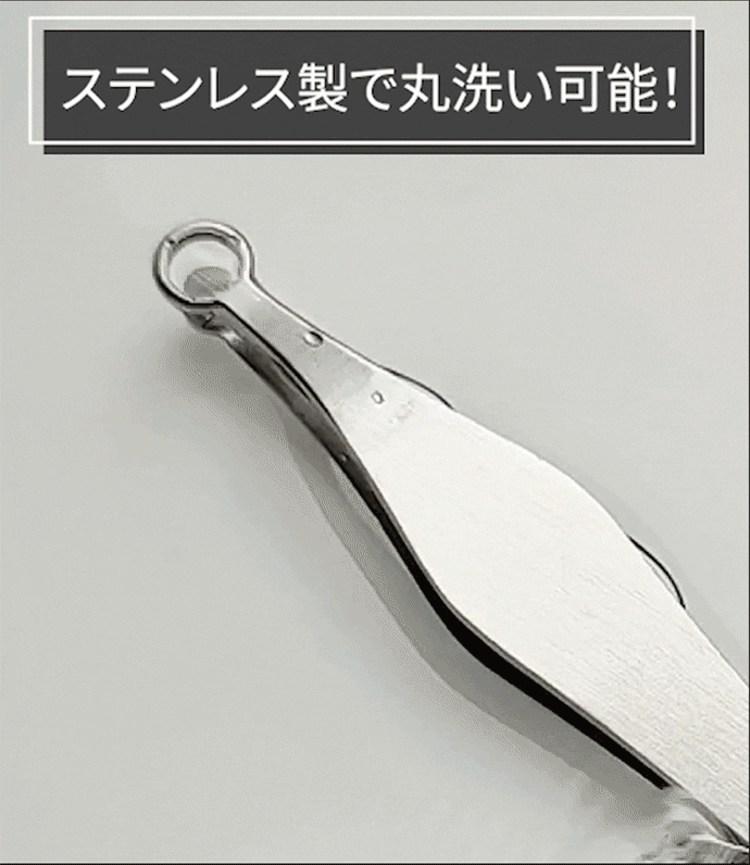 「クルリッパー」は高品質の素材を使用しており、非常に高い防錆力を持っています。皮脂や水が付着しても錆びず、長くお使いいただけます。使用後は簡単に水で洗い流すことができ、いつでも清潔に保てます。これなら手間なく、安心して使い続けることができます。