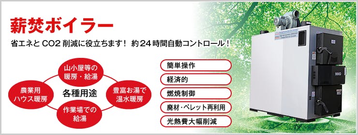 例:タイセイマシナリー株式会社製「薪焚ボイラー」※人工乾燥機は薪焚ボイラー温風機の他、蒸気式乾燥室の方式もあります。