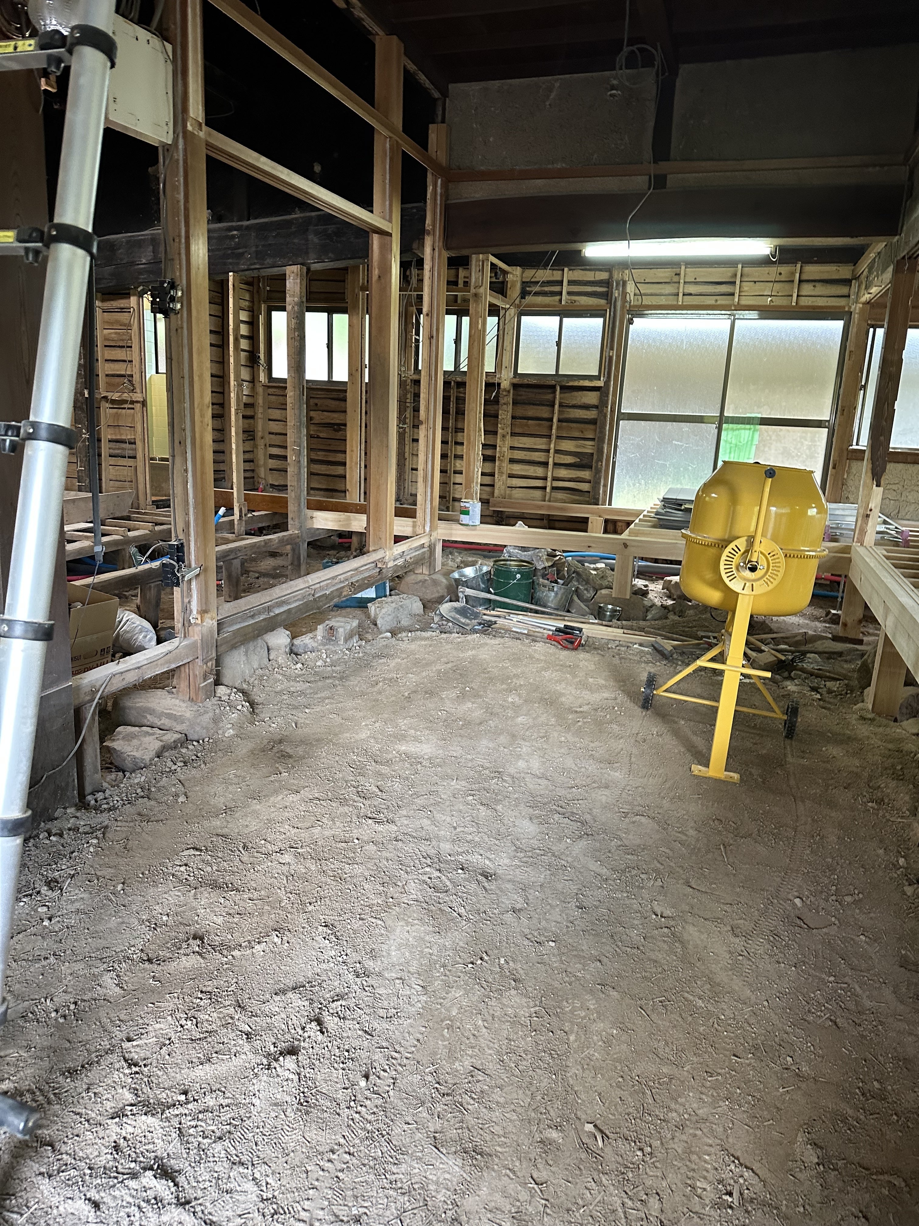 長い間人が住んでなかったので、柱はきれいだけど、床はボロボロ。