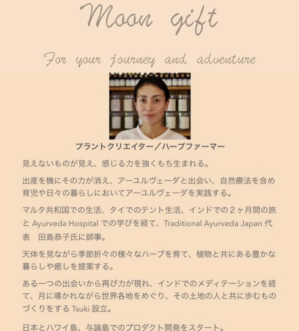 ある一つの出会いから再び力が現れ、インドでのメディテーションを経て、月に導かれながら世界各地をめぐり、その土地の人と共に歩むものづくりをするTsuki 設立。