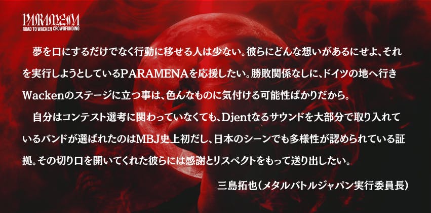 メタルバトルジャパン実行委員長を務める三島拓也(SABLE HILLS, Everlasting Fire)よりメッセージ