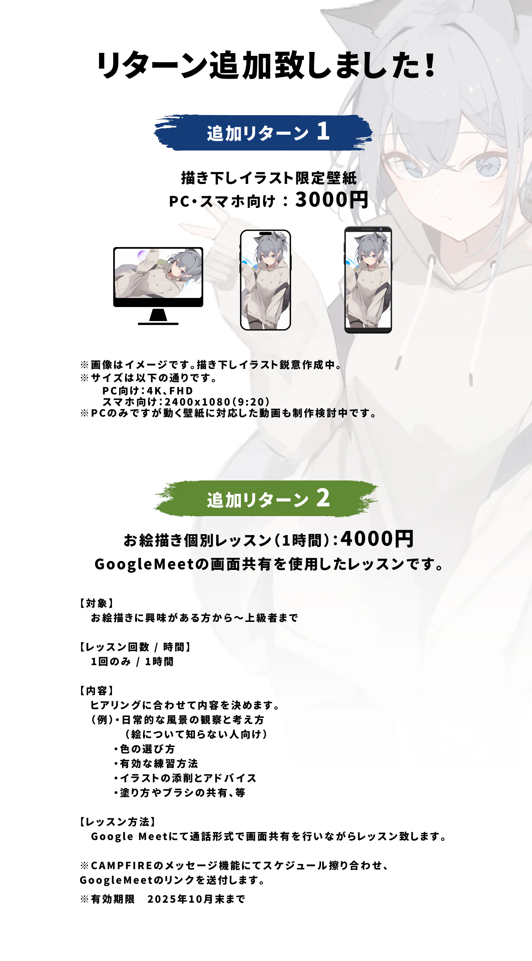 ※プロジェクトの性質上、以上の注意点につきましてあらかじめご理解とご了承いただいた上でご支援くださいますよう、よろしくお願い申し上げます。