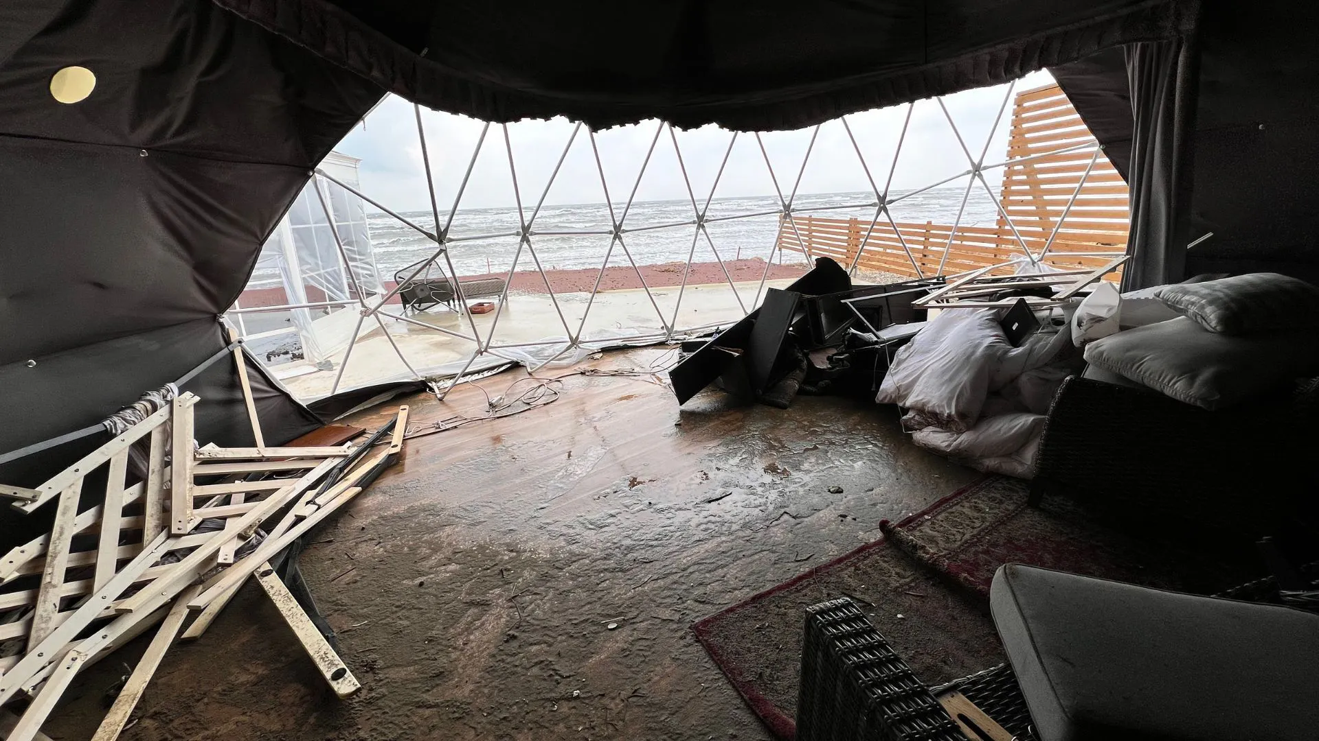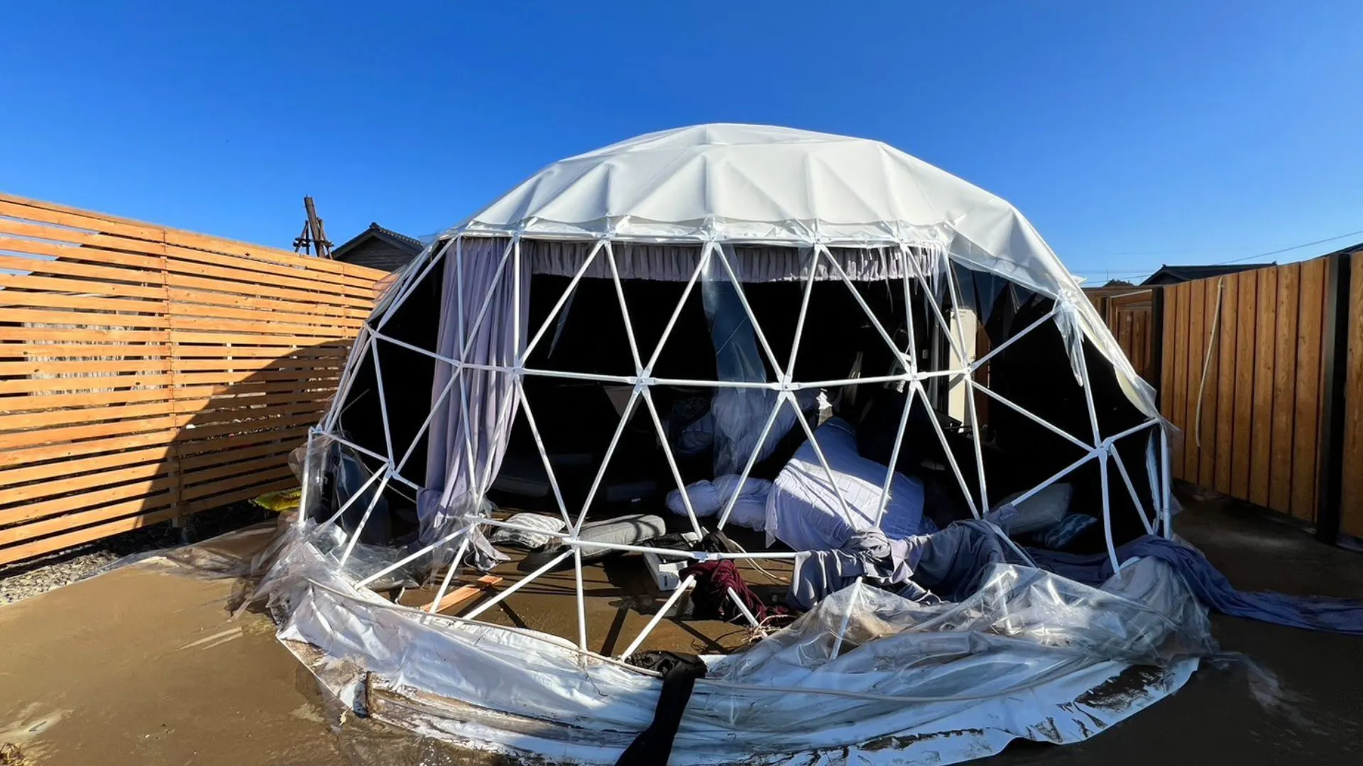 お部屋となるドームテントはほとんど崩壊。