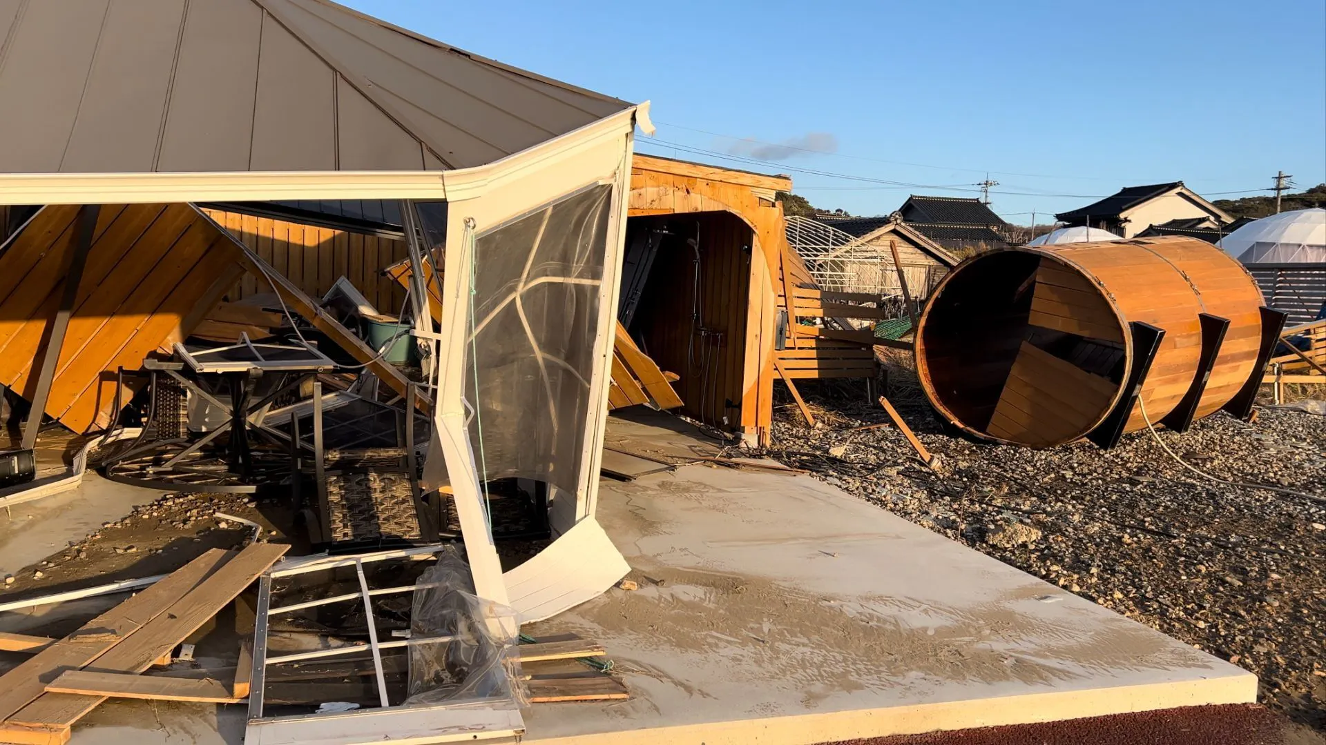 併設のお食事スペース、ジャグジー、バレルサウナも見る影もなくただただ津波の恐ろしさに驚くばかりです。