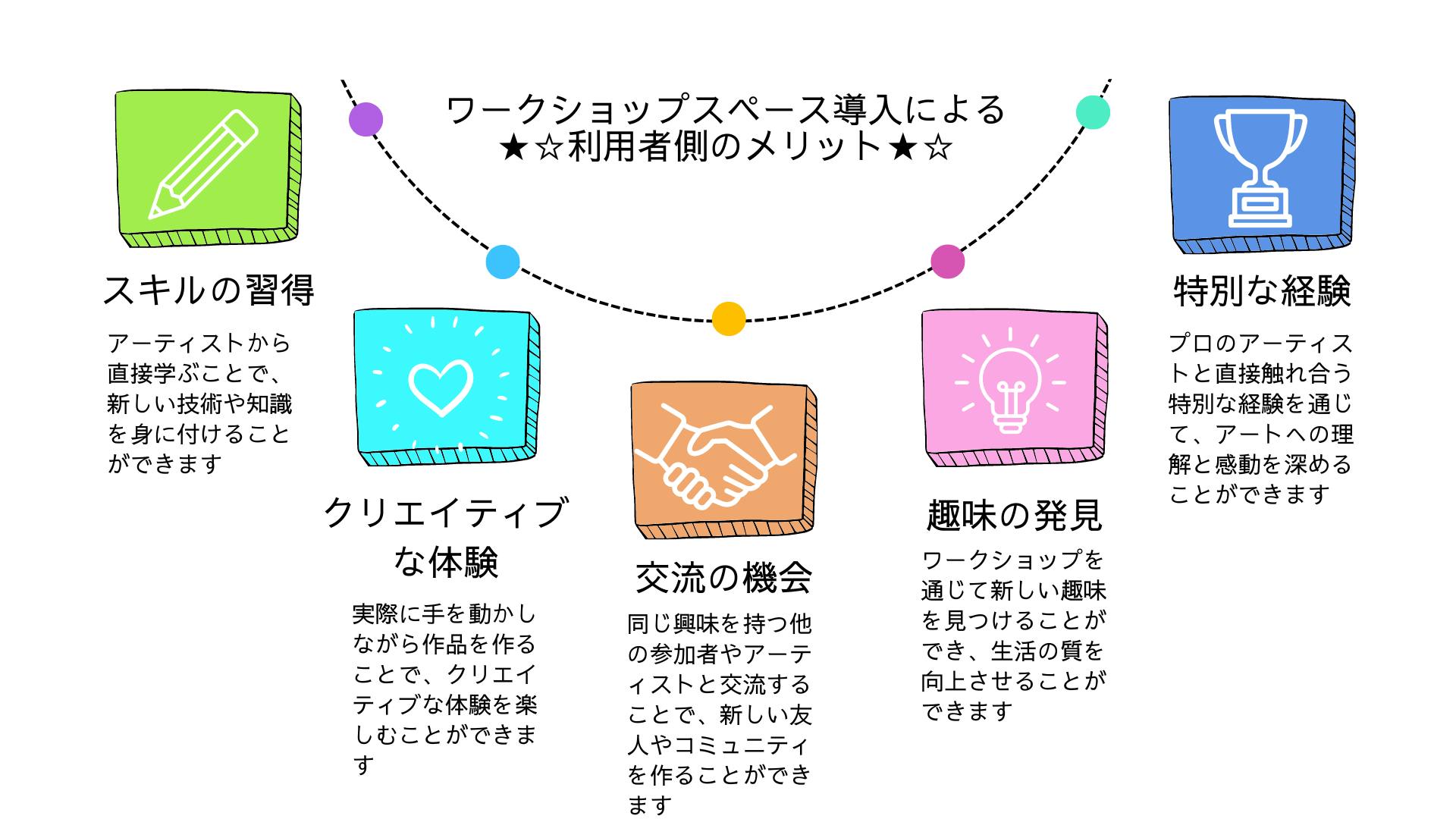 このように、ワークショップスペースはアーティストと利用者の双方にとって多くのメリットを提供し、豊かなアートコミュニティの形成に貢献します。