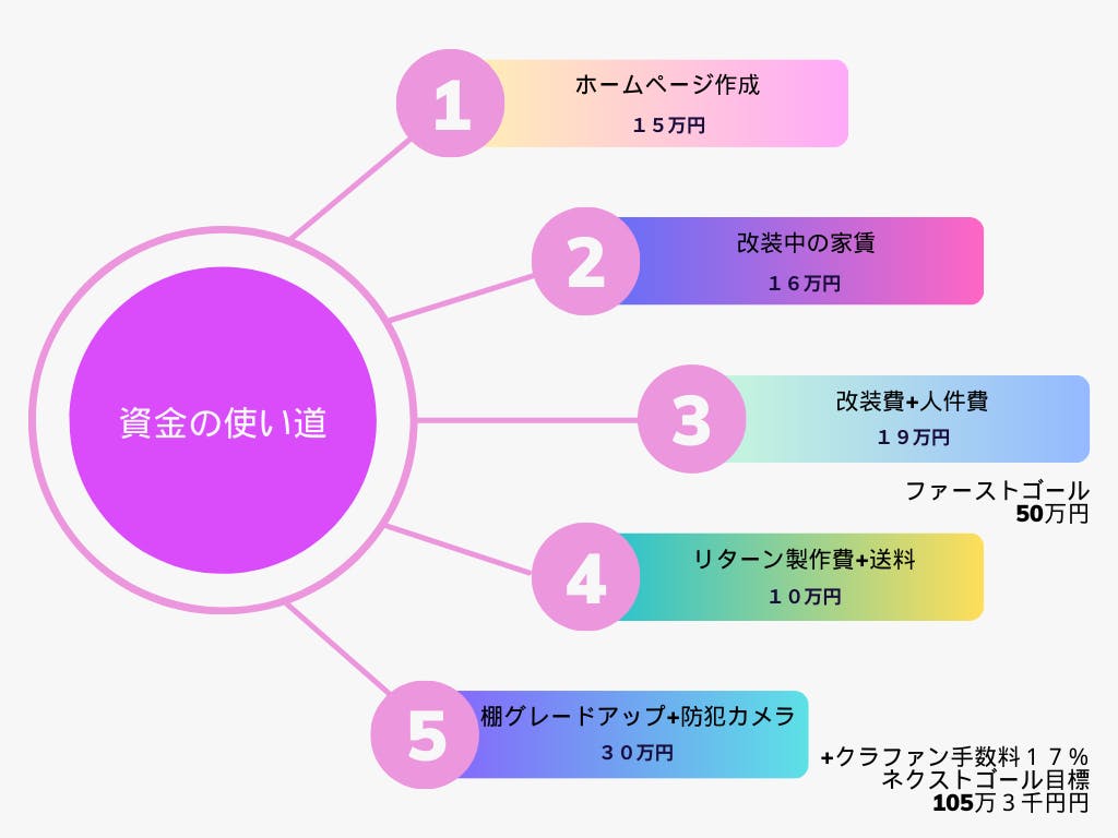 しかし、ここで満足するわけにはいきません!次なるネクストゴールとして、残りの13日間でリターン制作費、送料、シェア棚のグレードアップ、防犯カメラの設置費用としてプラス40万円となる90万円を目指します!