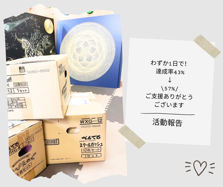 昨日までの達成率が43%だったところ、一日のうちに多くのご支援をいただき、達成率が57%にまで上がりました!
