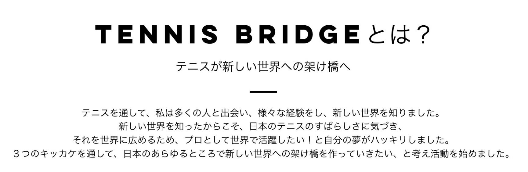 そのひとつが「TENNIS Bridge~テニスが新しい世界への架け橋へ~」という活動です。