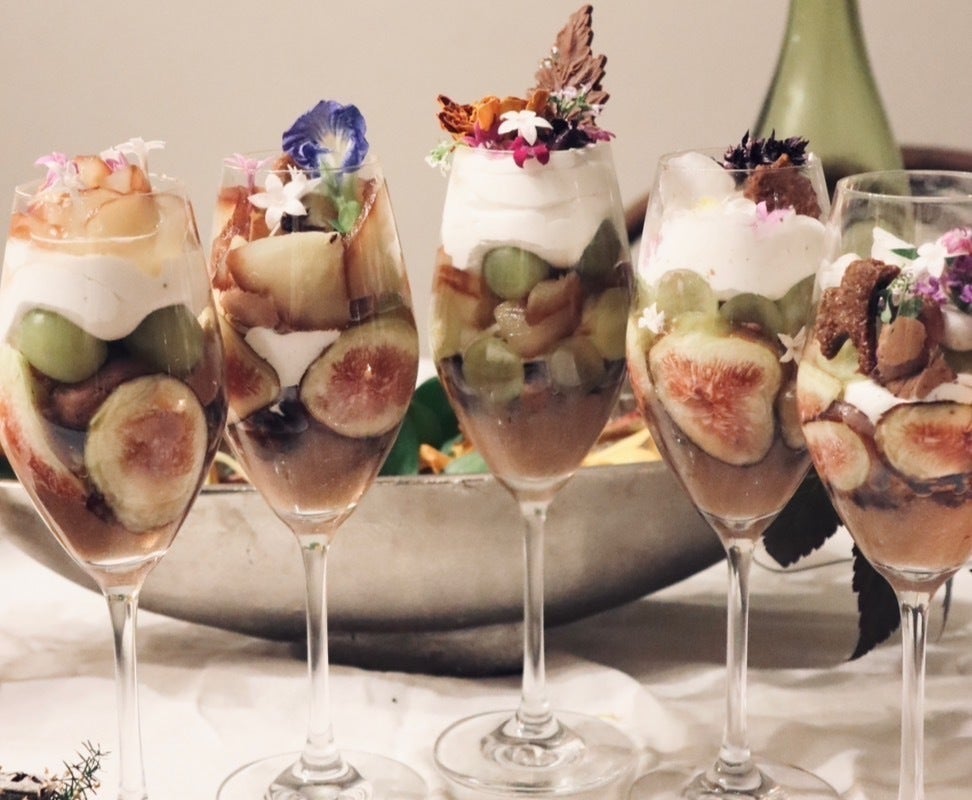みなさん、こんにちは! FUFPです。11月3日に「山梨ヌーボー」(*1)が 解禁されました。*日本が世界に誇る日本国有のぶどう品種である 甲州(※1)とマスカット・ベーリーA(※2) で造られた新酒ワインの解禁日山梨県をはじめ、都内や近郊でもワイン関連イベントが続いています♪さて、FUFPでは先週末に「ワインパミスのグラノーラ&ローチョコレート教室」を開催しました!まずは、料理家 安藤千英さんによるローチーズやジャンボマッシュルーム、オムニミートのステーキ等のおもてなしメニューとドメーヌヒデさんのリパッソがふるまわれました。お食事を楽しまれた後は参加されたみなさんと一緒にデセールの”憧れのグラノーラ”を使用したパフェづくり。千英さんが前日から仕込まれていた洋梨のコンポートのペーストに、シャインマスカットやイチジクなどの果物豆乳などで彩られて完成した”赤ワインパミスのグラノーラ”のアートなパフェ。とっても美味しそうですね。ご参加くださった皆様、本当にありがとうございました!また、皆様へお届けさせて頂くグラノーラもワイン醸造後の生パミスから乾燥・粉砕加工を経て、現在 製造中。いよいよ今月末までには発送となる予定です。生パミスをアップサイクルするためのコストや輸送から加工においての課題など考えるべき点も多くありますが、それでも、安全で質の高い果物やワイン造りに関わる地域の方々と一緒に、捨てるにはもったいない資源を何とか活かせたら!という思いで取り組んでいます。小さな活動ですが、今後ともどうぞよろしくお願いいたします。2024.11.06 FUFP