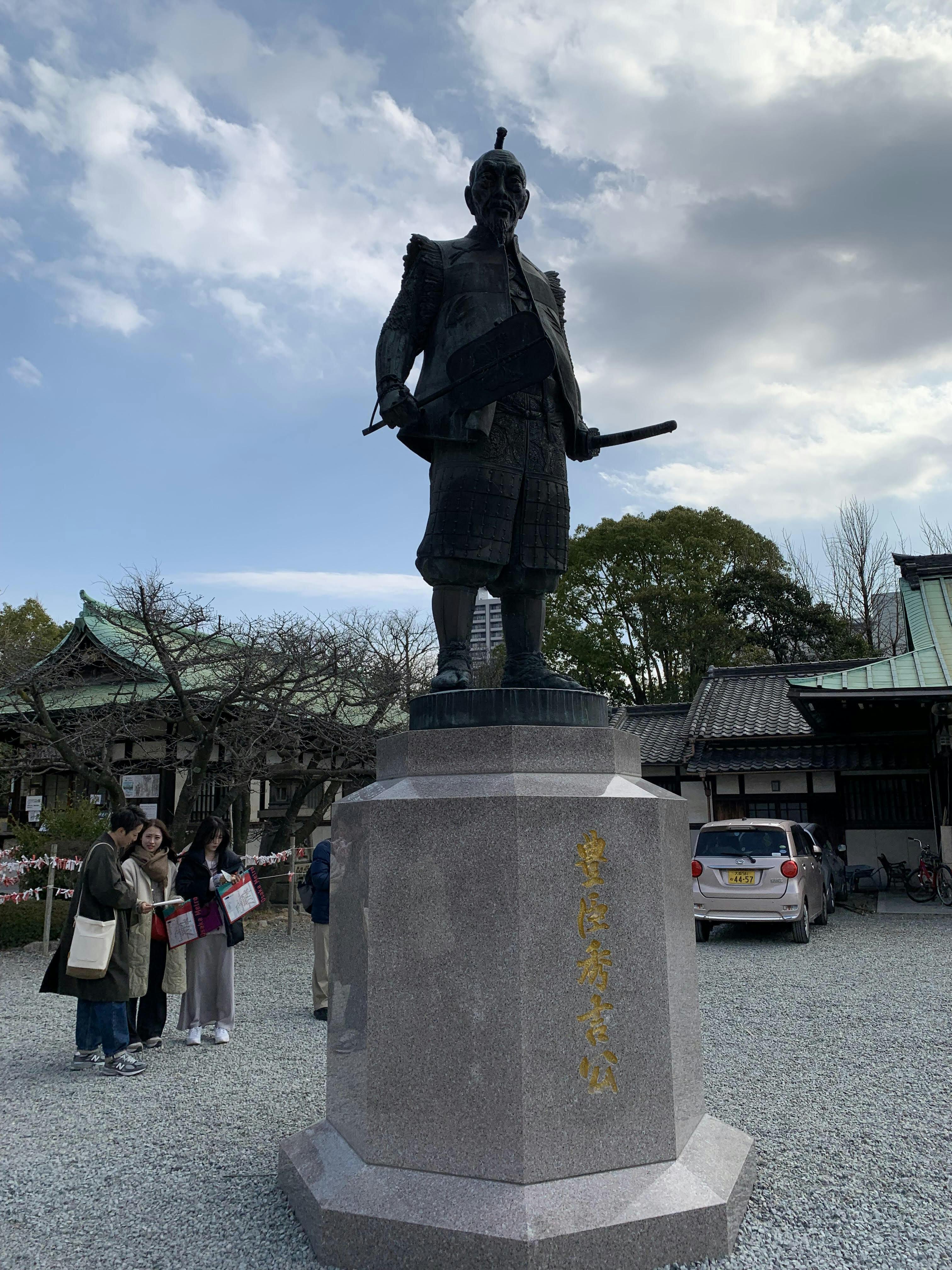 大阪城公園の中に大阪城豊國神社があり、その傍に豊臣秀吉像があります。
