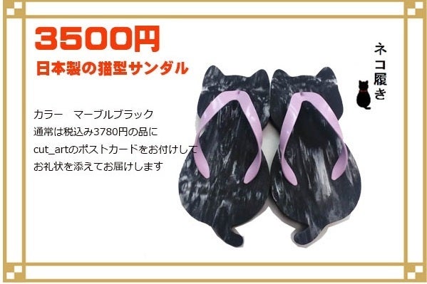 ■ねこ履きサンダルとポストカード1枚にお礼状を添えてお届けします。