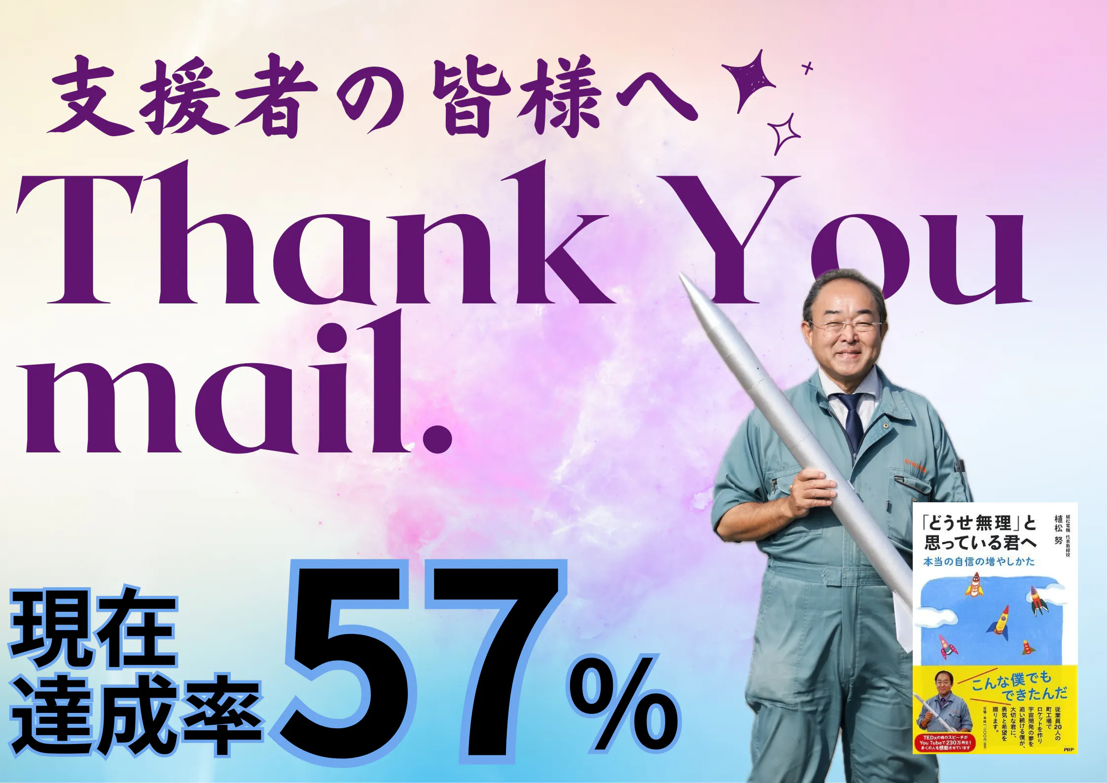 2024/06/27 12:00こんにちわ。クラウドファンディングを準備し開始まで2か月ほどかかり、とうとう6/26から開始することができました。地元の方々の応援はもちろん近隣市町村や海を越えた地域の方からの応援もあり初日も表額を大幅に達成することができました。改めて、感謝申し上げます。私たちの目的はシンプルに地元中川町の子供達に当たり前のように夢を持ってもらい、当たり前のように夢に向かってほしい。ただそれだけです。周りの大人にどういわれようと決してひるまない気持ちを強く持ってほしいと日々思っています。そのきっかけ作りの一歩として私たちは植松努さんの言葉が中川町には今すぐに必要だと感じました。早くその日が来ないかとうずうずしている毎日を過ごしていますが、それまでに中川町で、道北で、できる限りの準備をしっかりとして当日を迎えたいと思っております。みなさまの変わらぬご声援を今後ともよろしくお願い致します。 もっと見る