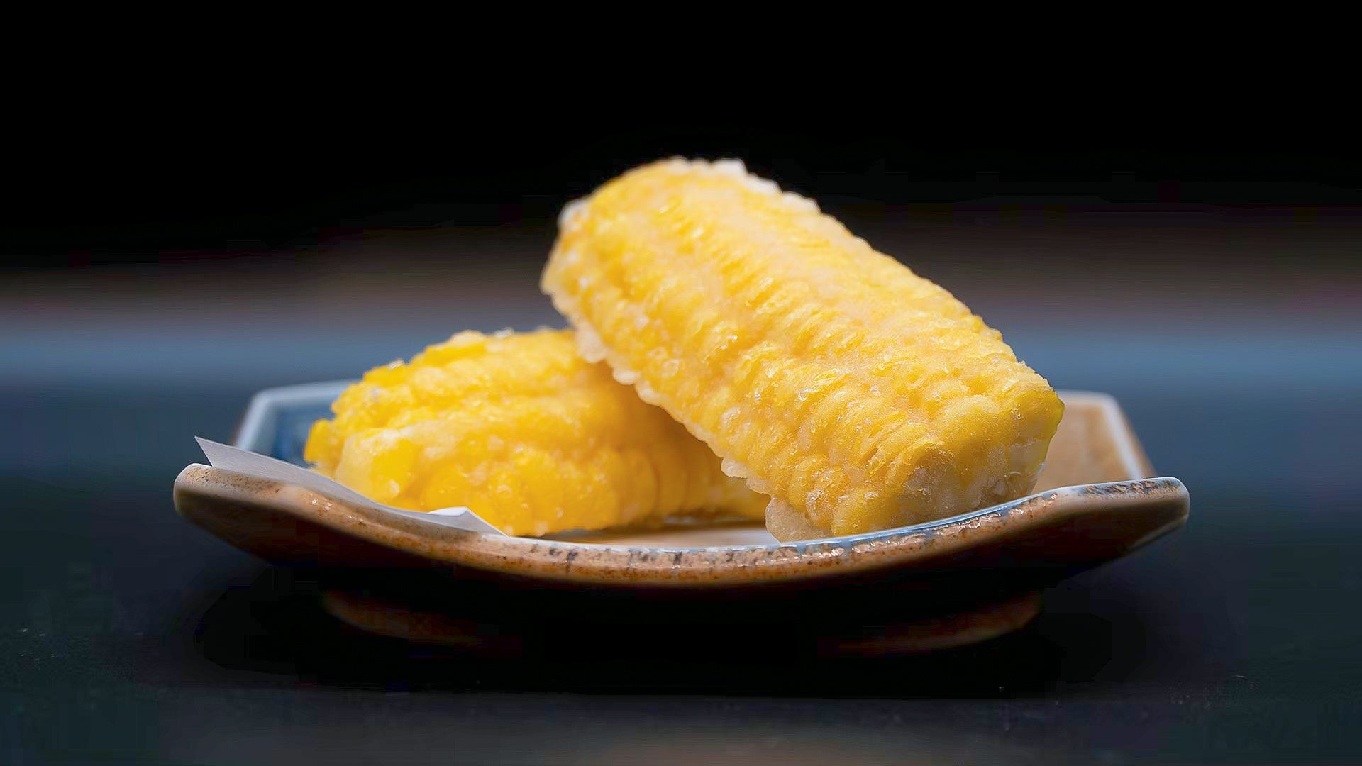 定番のとうもろこしの天ぷらは大人気。北海道の旬の食材を都度ご提供して行きます。