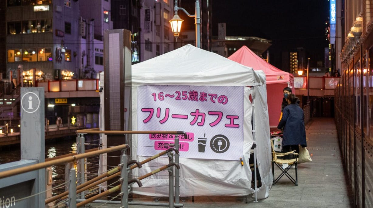 支援者として、個人で関わる人もグリ下には少人数ながらもいます。ただ、明らかにグリ下にきている子たちに対して社会資源は圧倒的に少ない。就労支援や就職のサポートよりも、まずは衣食住の支援や家庭的な体験、また制度につなげることや医療面での支援が必要だと思い、スタッフたちがテントを道頓堀の一角に出して動き出してきました。