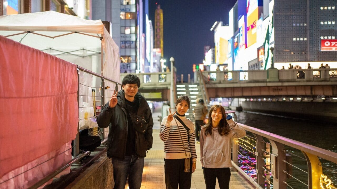 大阪有数の繁華街である道頓堀のグリコ看板付近(通称グリ下)には、居場所を求める若者・子どもがSNSなどを介してつながり、集まります。