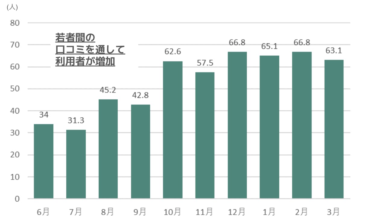 ユースセンターの利用者は若者間の口コミを通して増加しています。