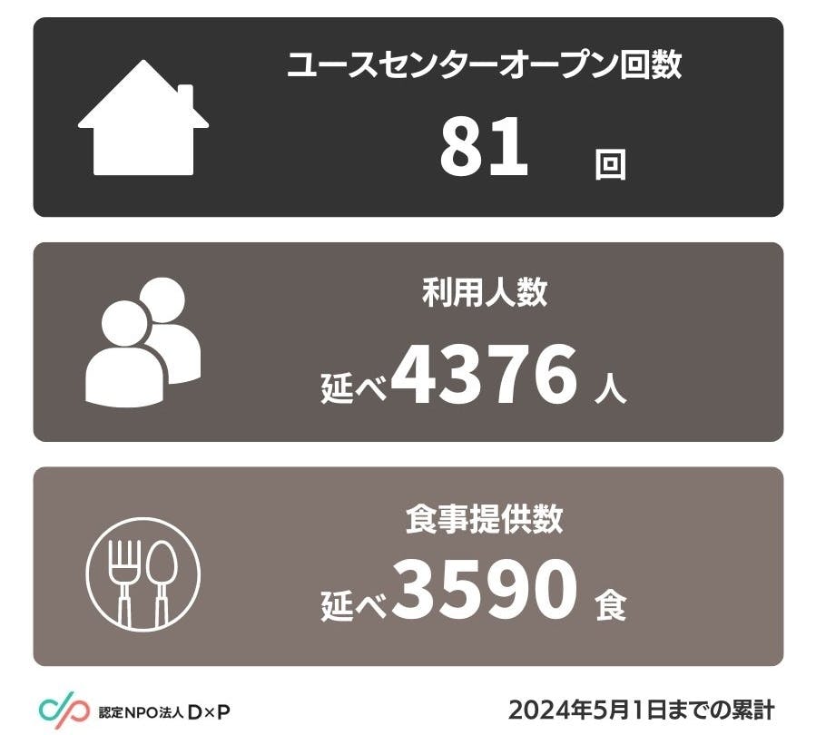 2024/11/06 13:27クラウドファンディング「グリ下から緊急提言!繁華街に集まる4000人の若者に安全な居場所をつくりたい」をご支援いただき、誠にありがとうございました。現在D×Pでは、「年末年始に孤立する若者からのSOS|緊急食糧支援2024 冬」と題し、年末年始に孤立する若者へ食糧・現金を給付する、「ユキサキチャット」の運営費を募るクラウドファンディングを実施しています。▼詳細・ご支援はこちらhttps://readyfor.jp/projects/dxp-sos-nogasanai2024ここ数年続いている物価高の流れは止まらず、支援を求めてユキサキチャットの登録者数は14,000名を越え、今も増え続けています。そして、「年末年始」が近づいてきました。普段頼れる公的機関は閉まり、寒さを凌げる商業施設は時短営業。相談できる友人・知人は家族との時間を過ごします。年末年始は困窮する若者たちにとって、孤立を深める、乗り越えねばならない期間です。12月以降、支援を求める声が集中すると見込まれます。「孤立を未然に防ぐ。困窮する若者からのSOSを逃さない。」という決意のもと、私たちD×Pはこの声に応えていきますが、需要に対して物資を確保し届けるための購入費や人件費が足りません。そこで、D×Pではクラウドファンディングを実施することにしました。目標金額は5000万円、5万食分の食糧支援、650万円分の現金給付をはじめとする、ユキサキチャットの運営費用を募っていきます。現在は224人の方に支援いただき、支援総額は5,662,000円となっております。▼詳細・ご支援はこちらhttps://readyfor.jp/projects/dxp-sos-nogasanai2024クラウドファンディングは12月20日(金)となります。応援・支援よろしくお願いいたします。 もっと見る