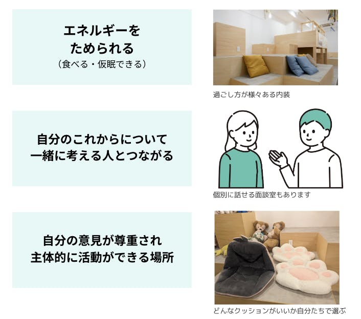 若者の状況や状態に合わせて利用できるようにしていきます。