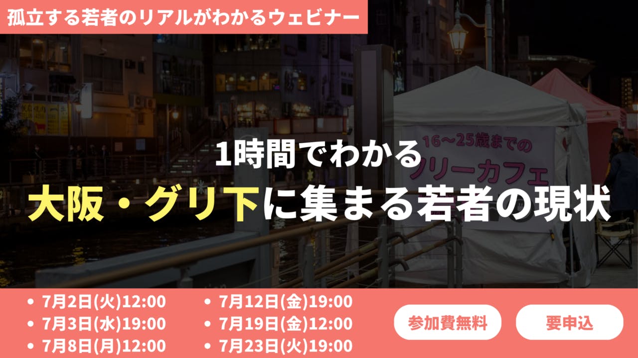 【 ウェビナー参加申込受付中】1時間でわかる 大阪・グリ下に集まる若者の現状